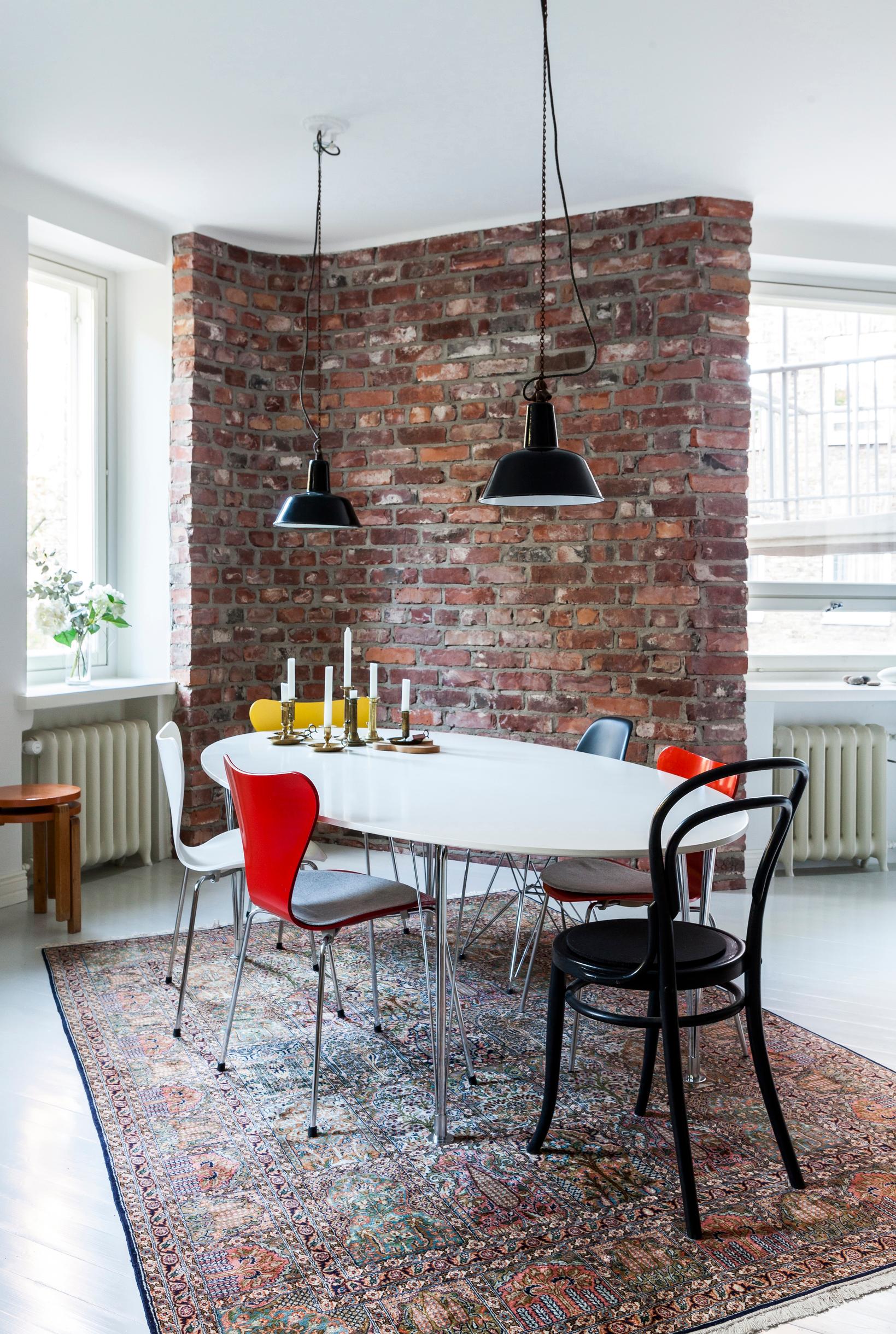 ”Eskon muuraama antiikkitiiliseinä tuo asuntoon sopivasti lämpöä ja rosoa.”