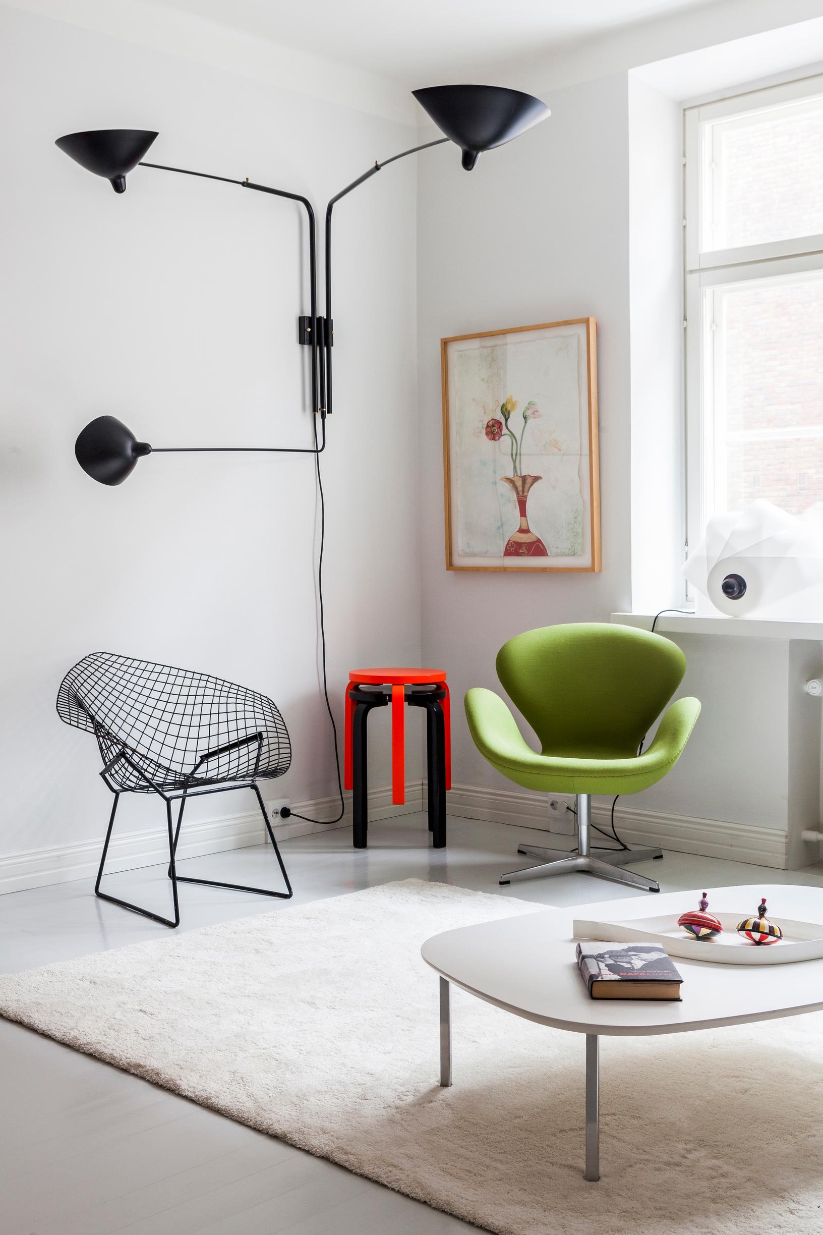 Kodissa on useita Arieto ”Harry” Bertoian suunnittelemia teräsverkkotuoleja ja ruotsalaisen Nils Strinningin suunnittelemia String-hyllykköjä. Keveinä ja ilmavina ne ovat Tuulan mieleen. Myös Alvar Aallon jakkaroita on erivärisinä ja eri aikakausilta.
