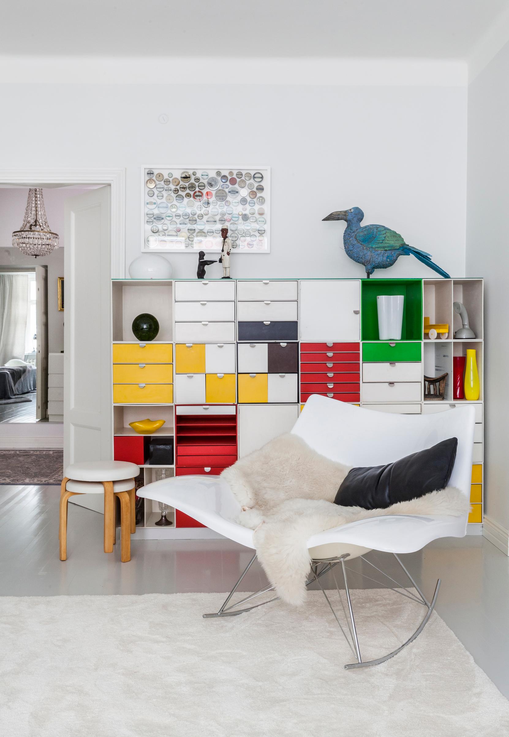 Esimerkiksi olohuoneen moduulihyllykkö, Ristomatti Ratian vuonna 1971 suunnittelema Palaset, on kärsivällisen keräilyn tulosta.