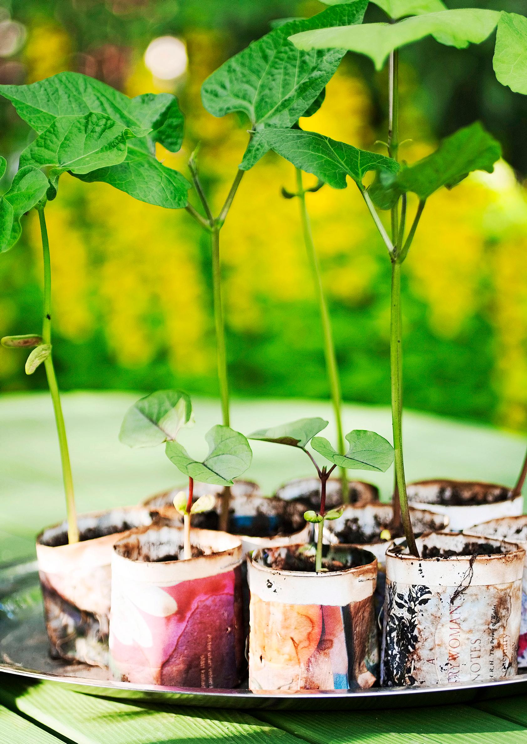3. Valmista pottikoneella tai wc-hylsyllä paperipotteja, jotka voit istuttaa sellaisenaan maahan.