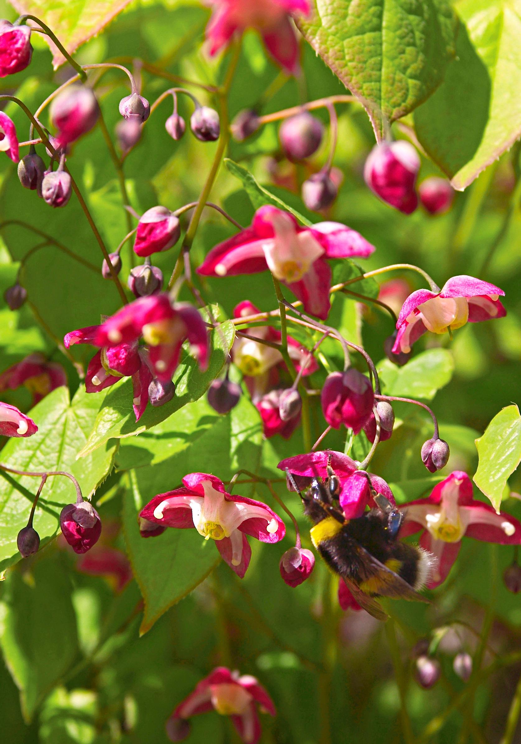 Kuiva ja varjoisa kasvupaikka on hyvin ankara, mutta tarhavarjohiippaa suositellaan liki jokaisessa puutarhakirjassa. Eikä syyttä. Kuivuutta tarhavarjohiippa sietää ilmiömäisen hyvin. Minulla se kasvaa paikassa, jossa on aika paljon koivunjuuria. Mutta hyvin se pärjää niidenkin seassa. Epimedium x rubrumin punertavat lehdet ovat todella nätit, mutta kukat vielä kauniimmat. Ne ovat niin hennot, että ne oikeastaan näkee vasta kyykistyessään lähelle.