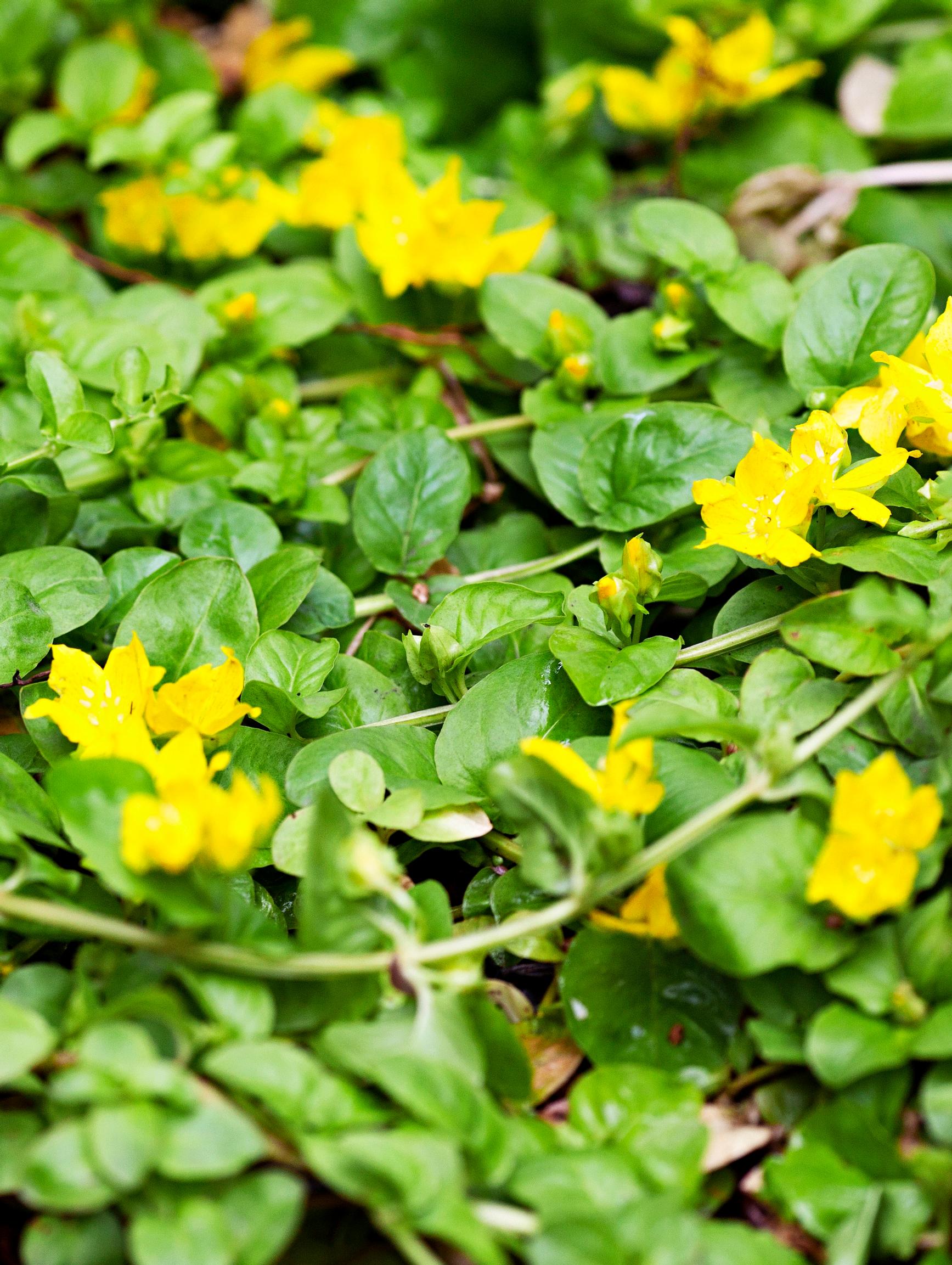 Moni tuskailee, mitä tekisi avo-ojalle tontilla. Se kun ei useinkaan ole hääppöisen näköinen. Suikeroalpi on täsmäkasvi avo-ojaa somistamaan, sillä se kestää sekä ajoittaista kosteutta että kuivuutta. Lysimachia nummularia kasvaa helposti muiden yli, joten kaverina pitää olla kookkaita kasveja. Kuivassa paikassa liian innokkaasti leviävät kasvustot on helppo repiä pois, koska juuret ovat pinnassa. Olen yhdistänyt suikeroalpia lehti- ja havupensaisiin – vaikkapa koivuangervo on kiva pari.
