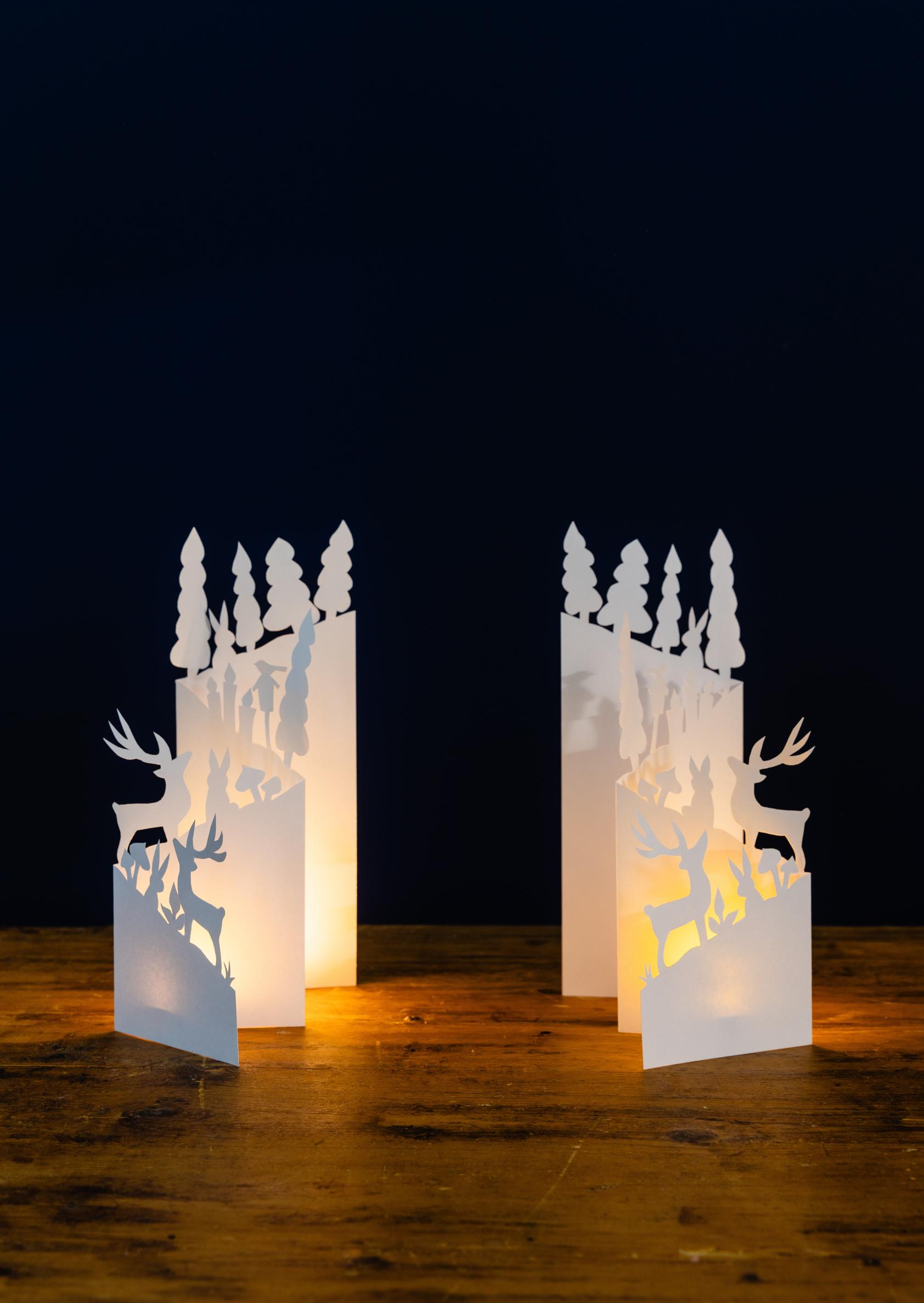 Talvinen metsämaisema syntyy edullisesti vain paperia leikkaamalla. Voit tulostaa valmiin mallikuvan avuksesi. Lisää led-tuikut antamaan valoa pimeisiin iltoihin.