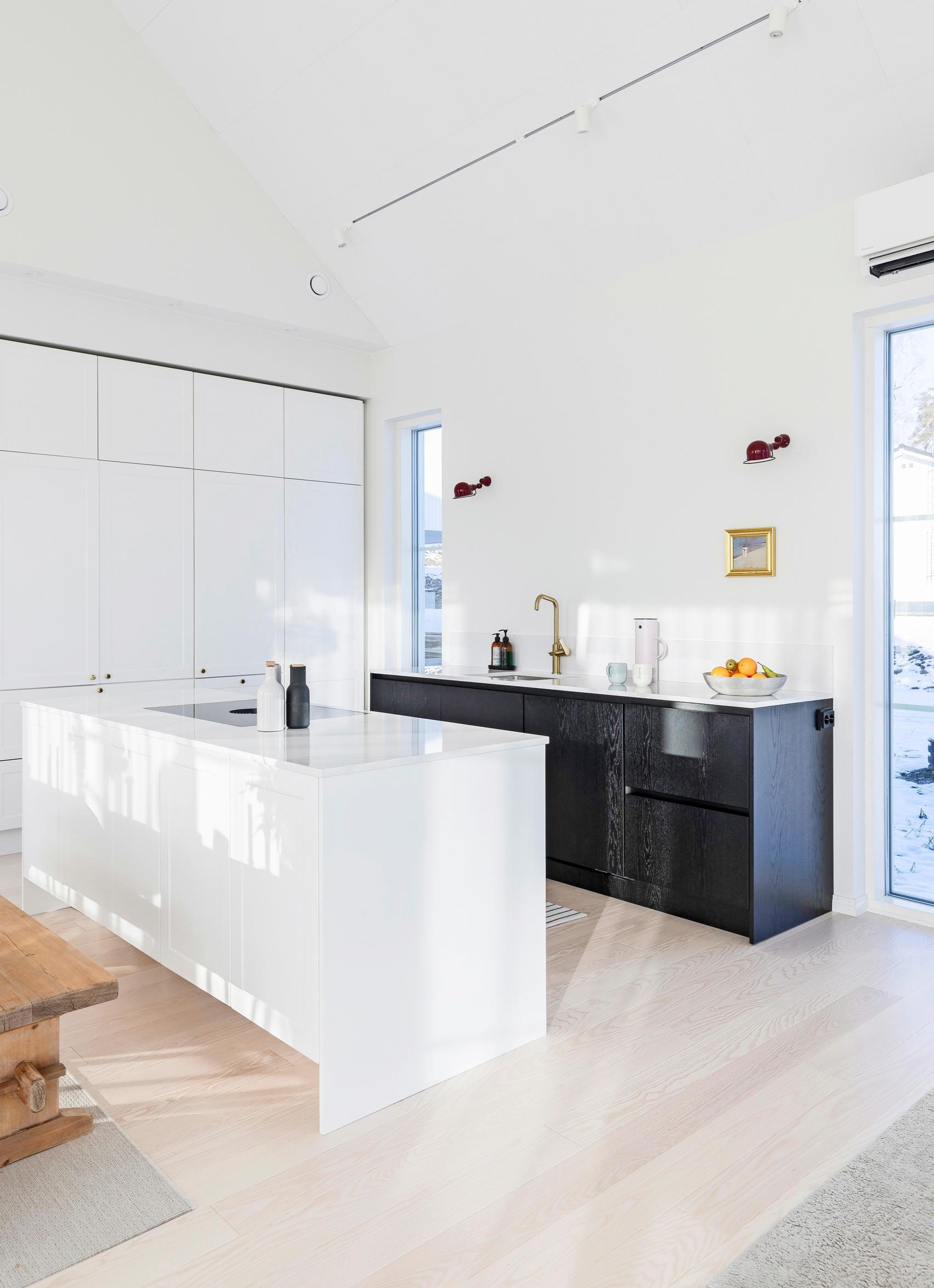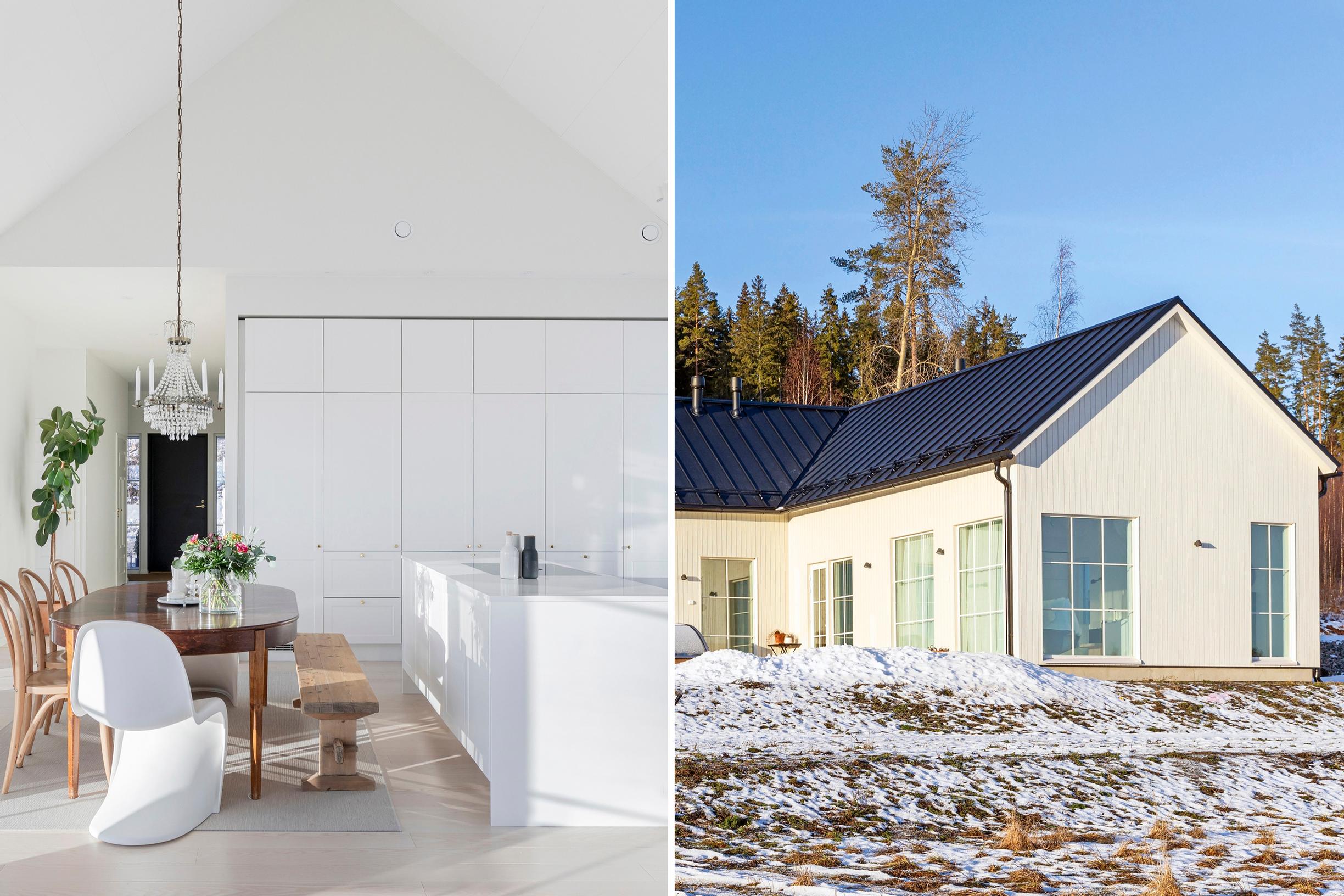 Elizabeth ja Henrik Käräjäoja toteuttivat perheelleen talon, jonka julkisivu ja vaaleat sisätilat ovat täydellisessä tasapainossa keskenään. Väljästi sisustetussa kodissa panostettiin myös valoisuuteen.