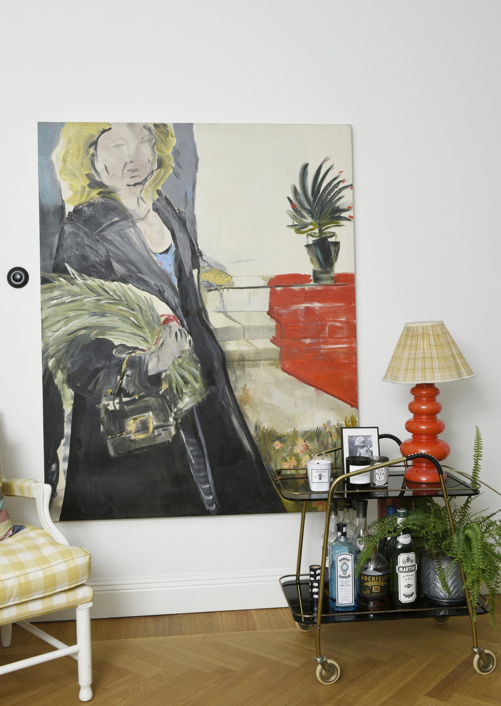 Baarikärry oli suosittu kaluste 1970-luvulla, mutta nyt on taas trendikästä asetella juomat esille. Vanha tarjoiluvaunu on hankittu Pariisista. Samankaltaisia myy esimerkiksi Koopernu.