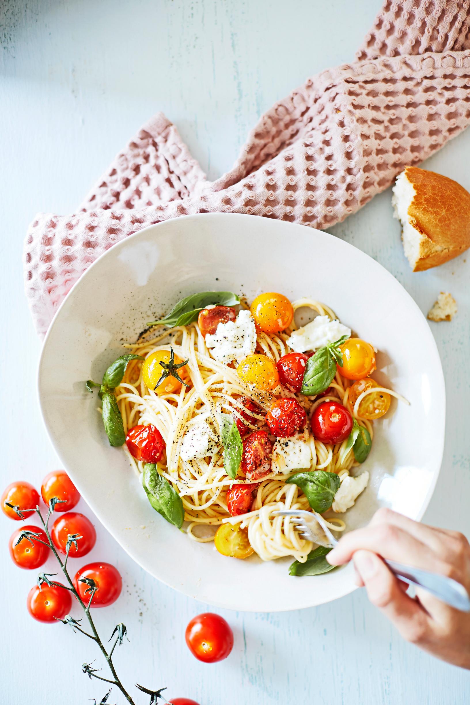 Täydelliset yhdessä: tomaatti-mozzarellapasta ja hapokas valkoviini