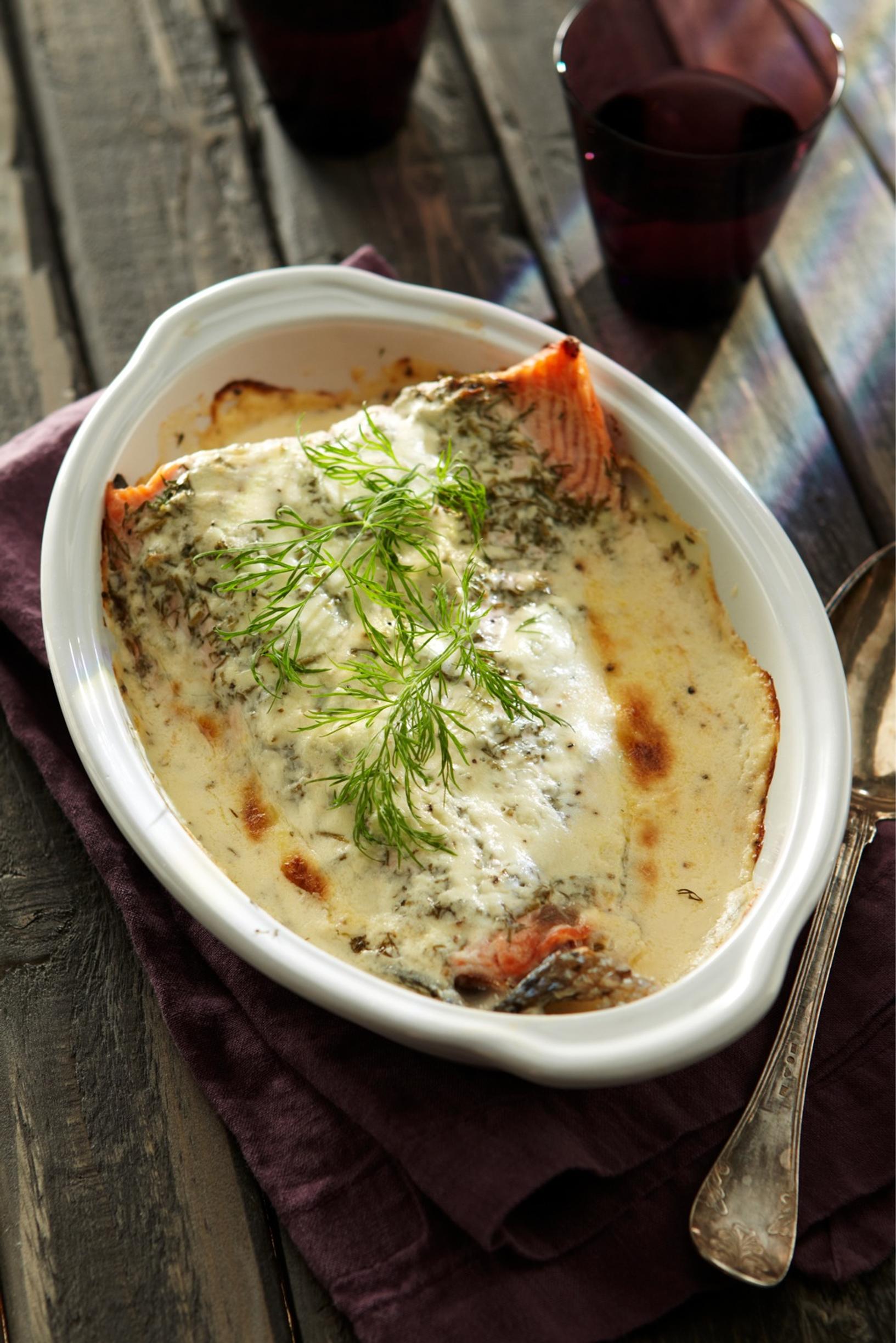 "Ranskankermalla kyllästetty uunilohi on kotiruokaa parhaimmillaan. Tyypillisesti lohi tykkää raikkaista ja suoraviivaisista valkoviineistä. Ranskankerman kanssa uunilohesta kypsyy runsaan täyteläinen, joten se kaipaa kyytipojaksi keskivertoa ryhdikkäämmän valkoviinin. Rapean hapokas, raikkaan sitruksinen ja hennon pippurinen itävaltalainen Dürnberg Grüner Veltliner Alte Reben tasapainottaa loistavasti ruokalajin runsasta suutuntumaa. Sitruunalla maustettu uunilohi saa vastakaikua myös valkoviinin pirteän hedelmäisestä makumaailmasta." Vinkin antoi viiniasiantuntija Ilkka Sirén.