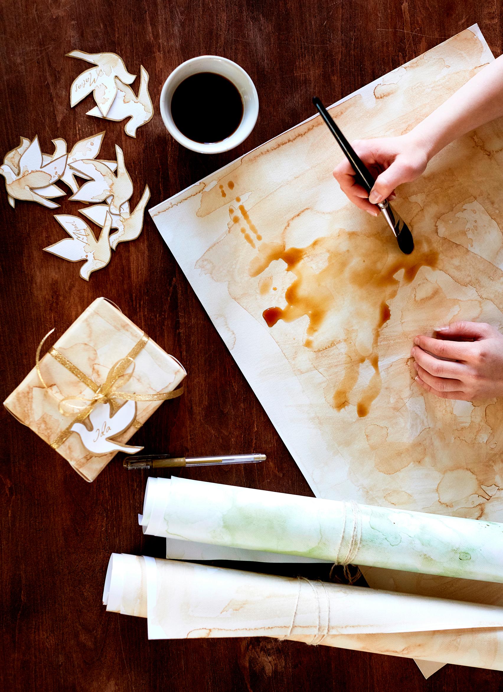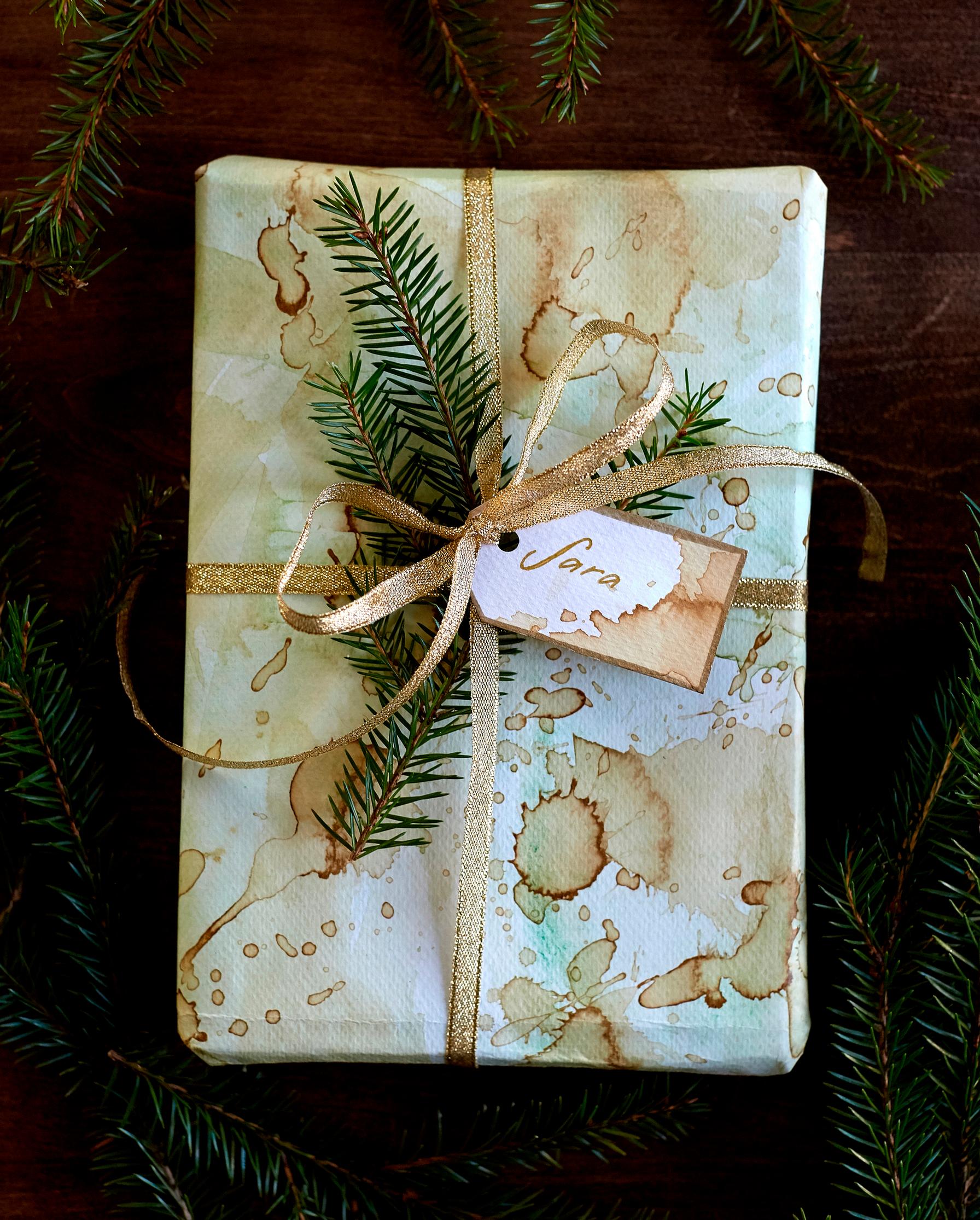 Lahjapaperi saa korean ilmeen itse koristelemalla! Maalaa hurmaava marmoroitu lahjapaperi kahvilla tai vesiväreillä.