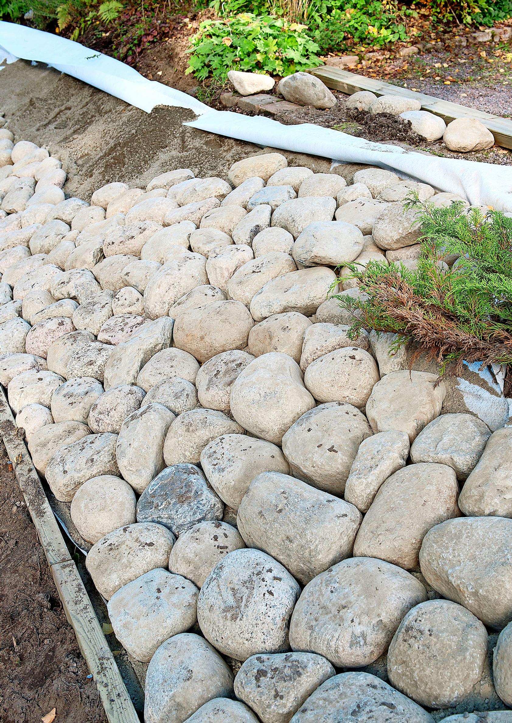 Voit kivetä rinteen seulanpääkivillä eli pyöreäksi hioutuneilla luonnonkivillä. Pieniä luonnonkiviä sanotaan mukulakiviksi, isompia kenttäkiviksi tai pultereiksi.