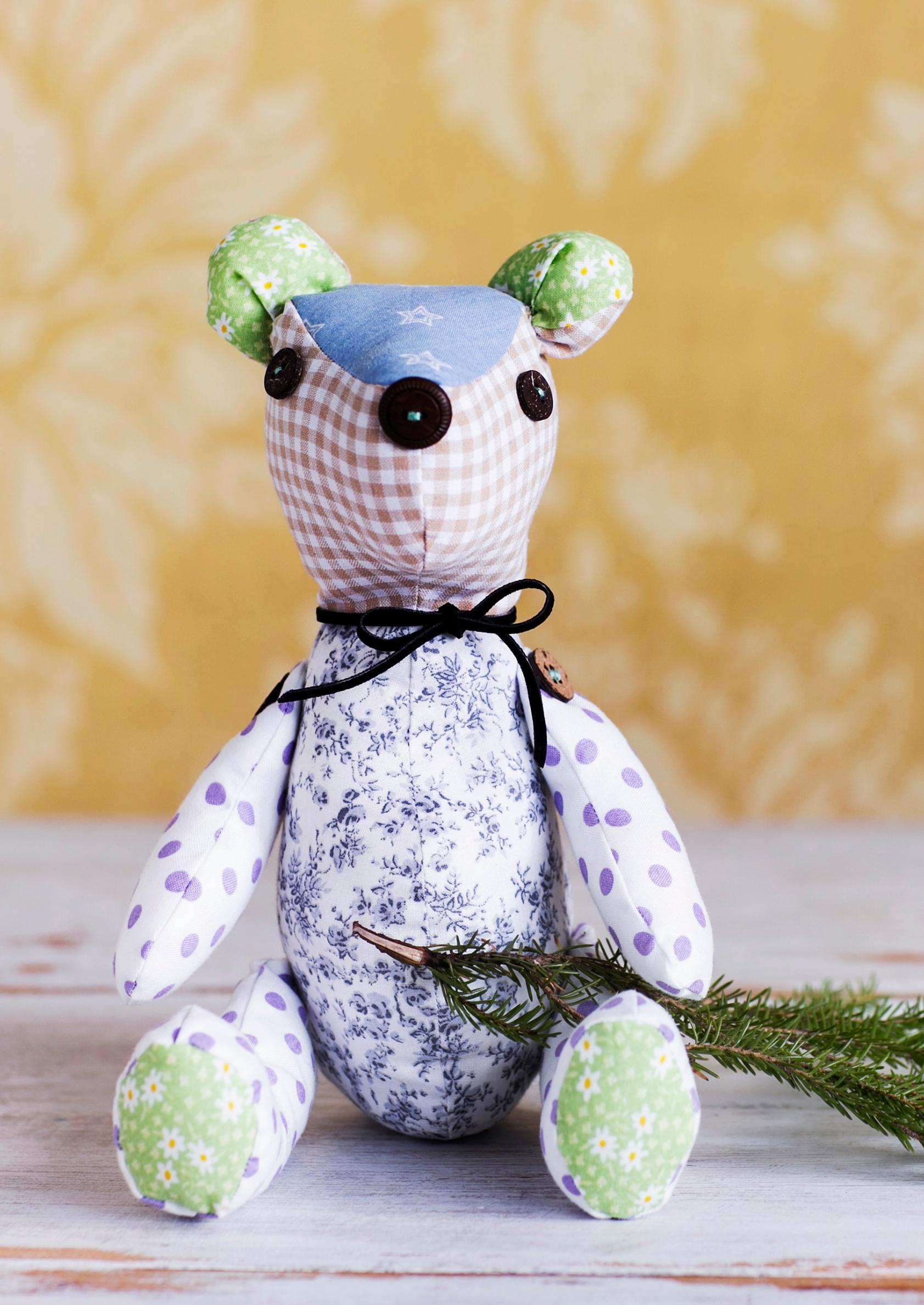 Suloisen nallen ompelu on hauska ja nopea käsityöprojekti. Materiaaleiksi riittävät tilkkuvakan jämäpalat ja muutama nappi. Jos intoa riittää, ompele myös petivaatteet ja tee nallelle sänky pahvilaatikosta.