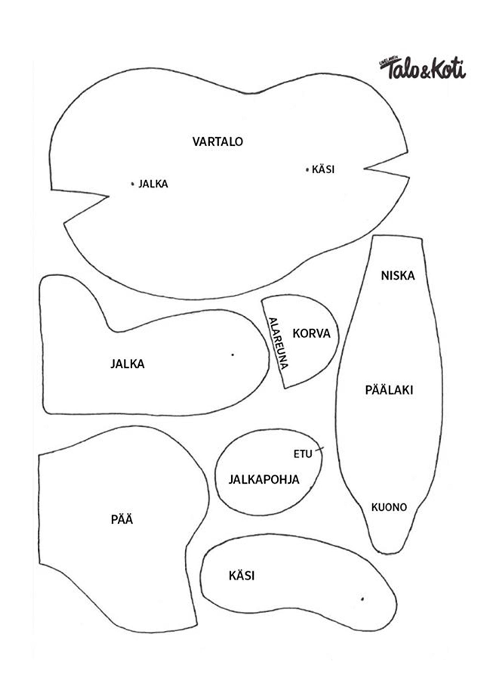 1. Printtaa nallen kaavat, suurenna kaava-arkki haluamaasi kokoon ja leikkaa kappaleet irti.