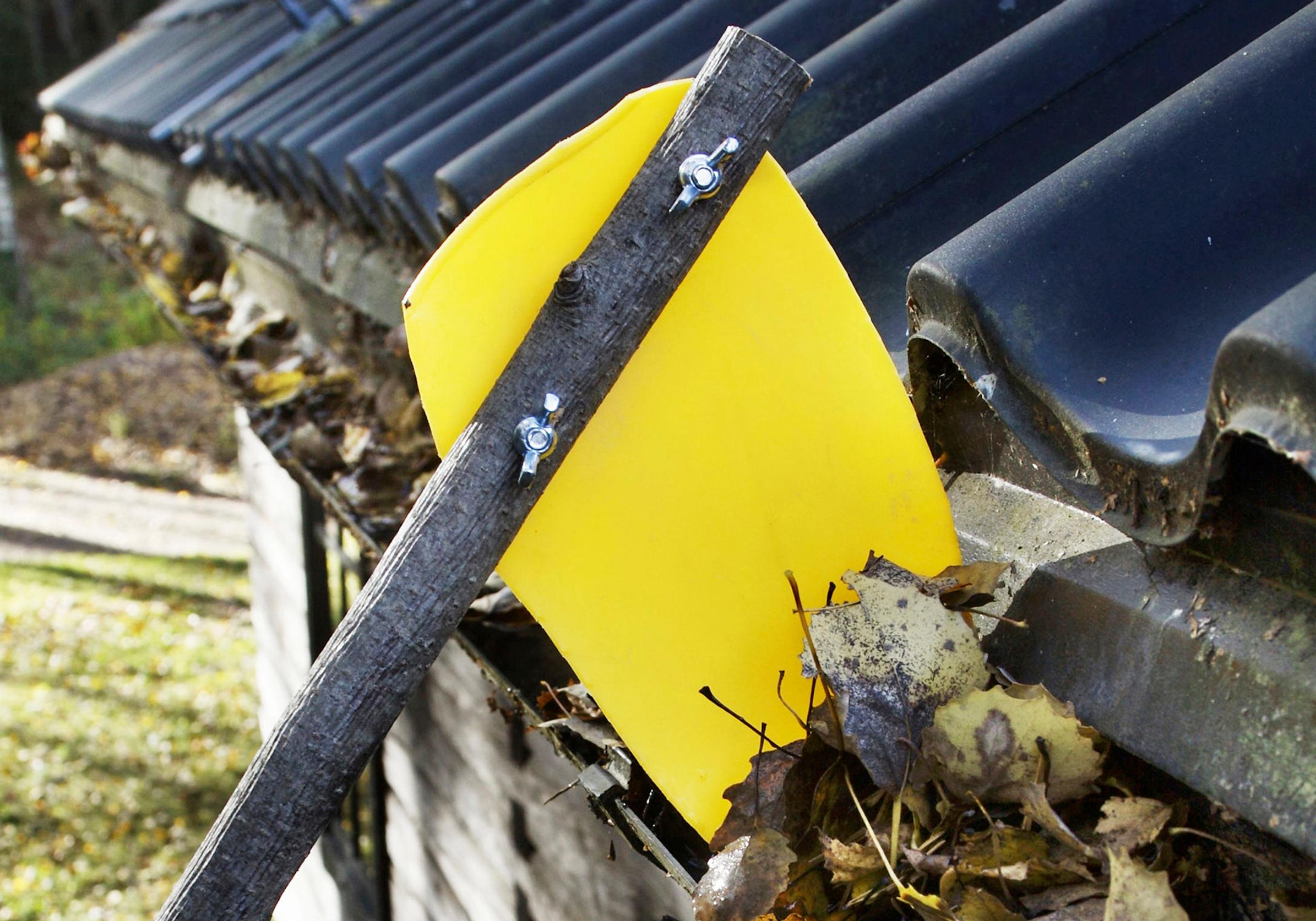 4. Sadevesikourun puhdistaja on valmis käyttöön! Jos lapa ei osu kourun pohjaan asti, leikkaa kärkeä kapeammaksi.