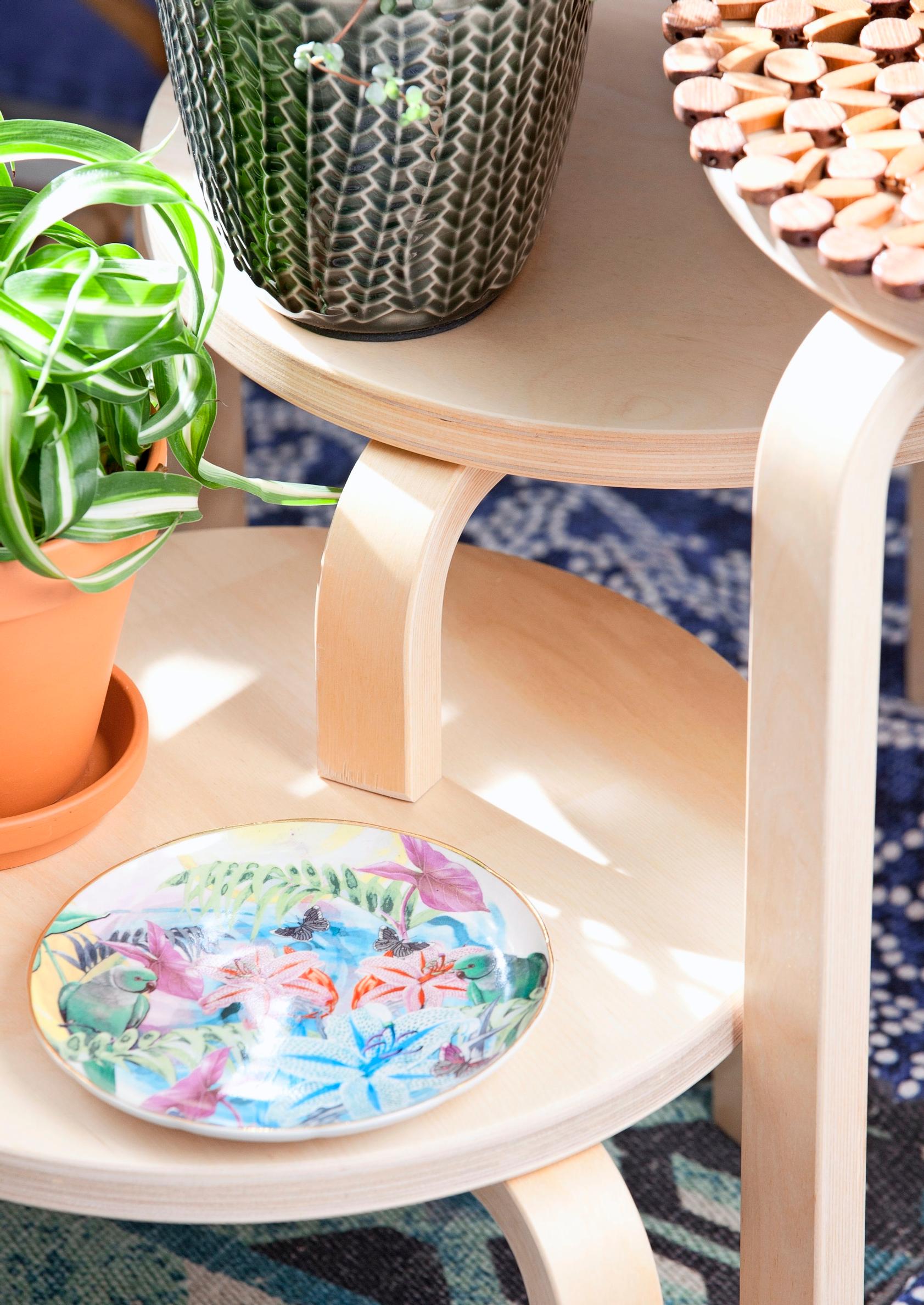 Tuunaa perusjakkaroista kolmiosainen kukkapöytä, joka kääntyy tilan ja tarpeen mukaan.