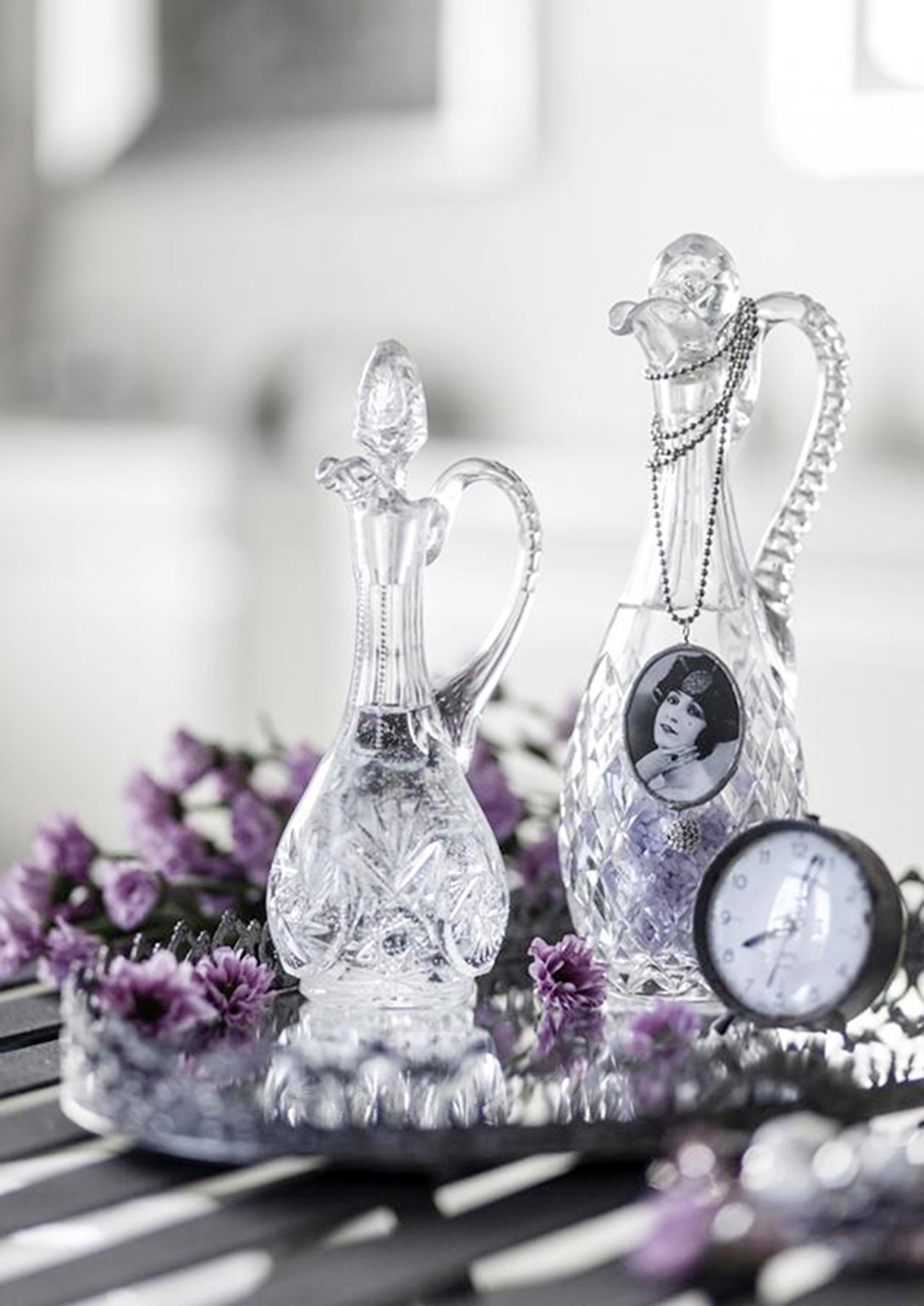 Lasipullot näyttävät kuulaassa valossa raikkailta kuin jää. Yhteen kerättynä niissä on voimaa. Sujauta pariin marjaisia tai kukkaisia oksia.