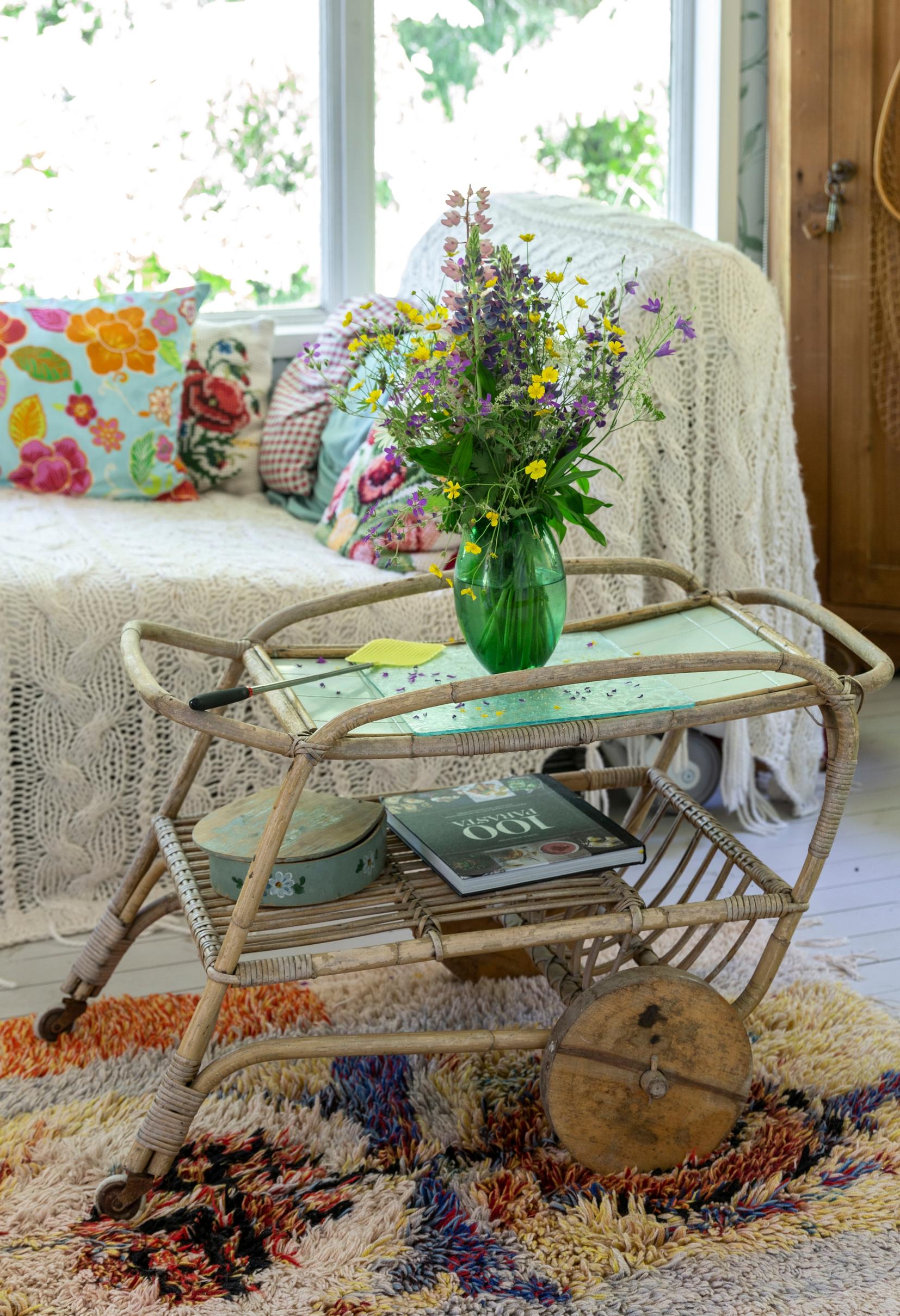 Aluksi homma meni niin. Vuosien varrella myös Harri on innostunut tavaroiden etsimisestä, ja hänen esteettinen silmänsä on kehittynyt valtavasti. Vanhan ja kauniin tuunaaminen on nykyään meille rakas yhteinen harrastus ja hauskat hankintamatkat tärkeä osa yhteistä arkeamme.