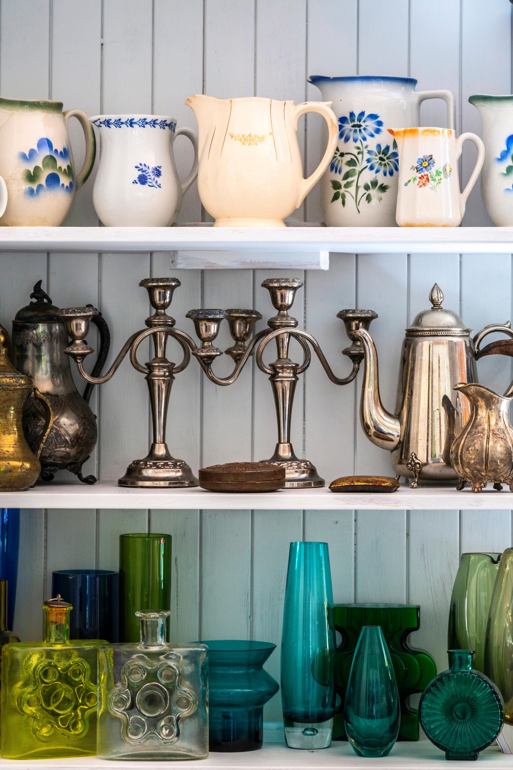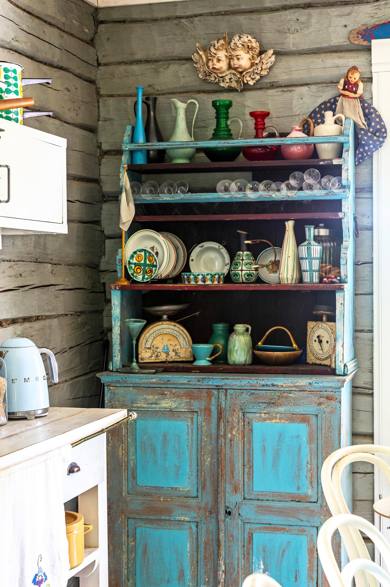 Teija ei hanki tavaraa varastoon, vaan miettii sille paikan ensin. Onneksi ihan joka astialle ei tarvitse varata tilaa erikseen, sillä astiakaappiin mahtuu aarre jos toinenkin. Usein esineitä kertyy kokoelmaksi asti.