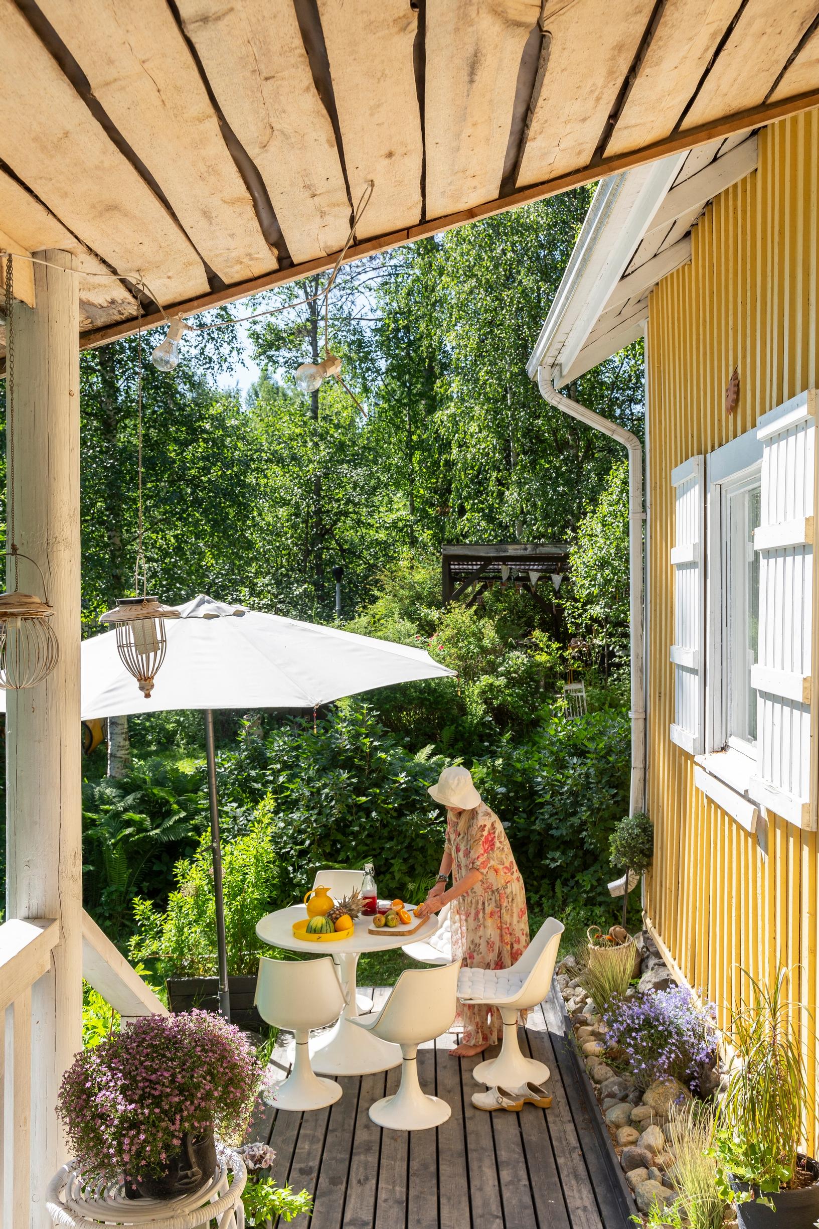 Taloon lisättiin remontin yhteydessä myös kuisti, jolloin etuoven paikka vaihtui. Friidu-koiralle viime kesä jäi viimeiseksi, nyt vahtia pitävät lasten koirat Zorro ja Snadi. Katso lisää kuvia Teijan Instagram-tililtä: @teijakalla.