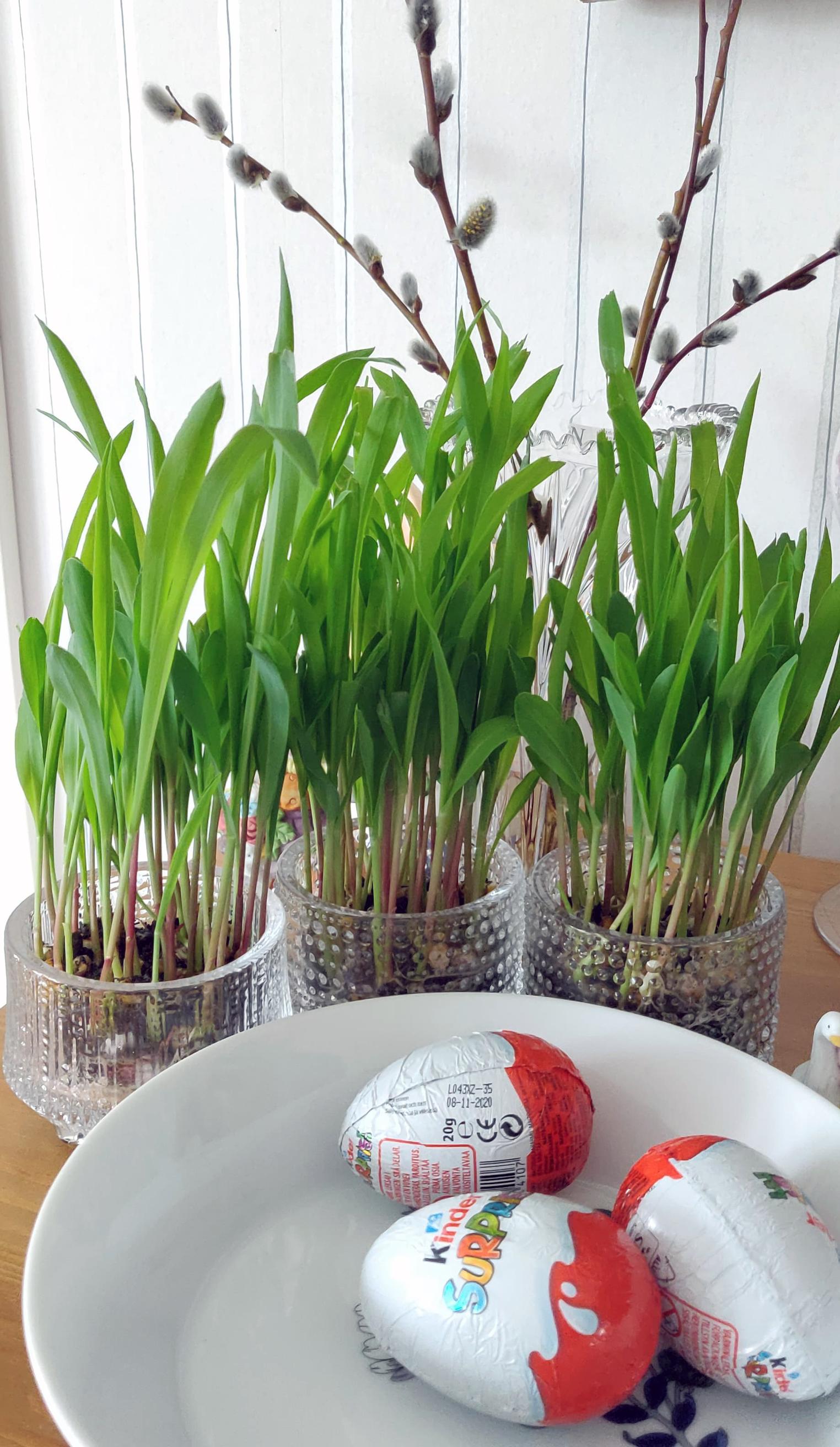 Pääsiäisruohoksi en ole vielä maissia kokeillut, mutta voisin testata. Rairuoho, ohra ja herneenversot kasvavat meillä pääsiäisenä." -Piia Kangas, Seinäjoki