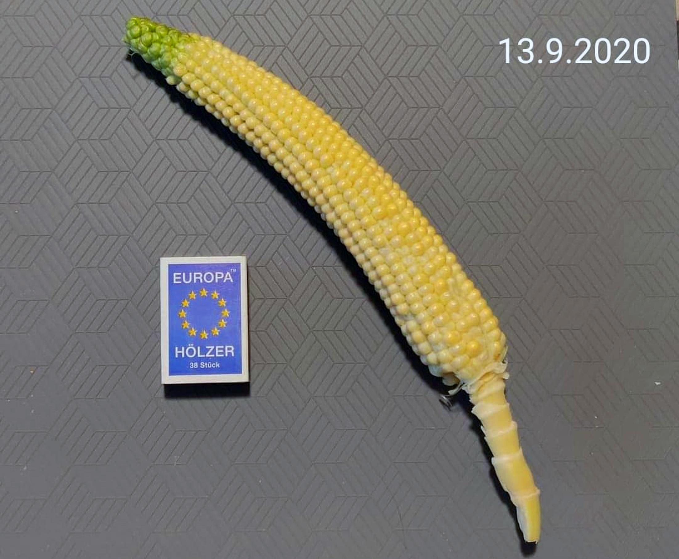 Korret kasvoivat hyvin, ja jokaiseen tuli parikin tähkää. Pyrin avittamaan tähkien pölyttymistä niin, että pudottelin siitepölyä lautaselle ja sitten yritin siirtää sitä tähkän "karvoihin". Ilmeisesti se onnistui, kun tähkiä tuli. Suurimman myös söimme.