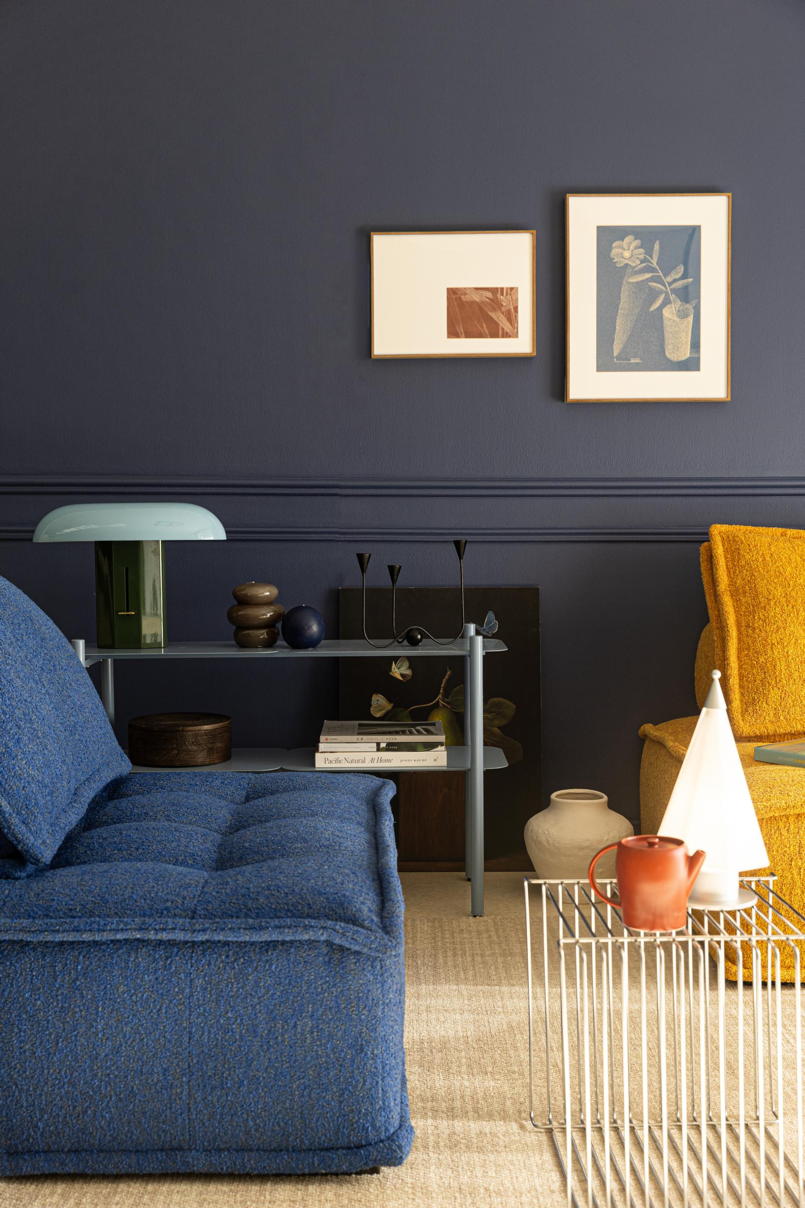 Klassinen sininen on ajaton valinta ja ehdottomasti nousussa sisustustrendinä vuonna 2025. Sininen tuo mukanaan ripauksen ylellisyyttä, mutta myös rauhoittaa tilaa. Sinistä voi käyttää niin seinillä, katossa kuin kalusteissakin.