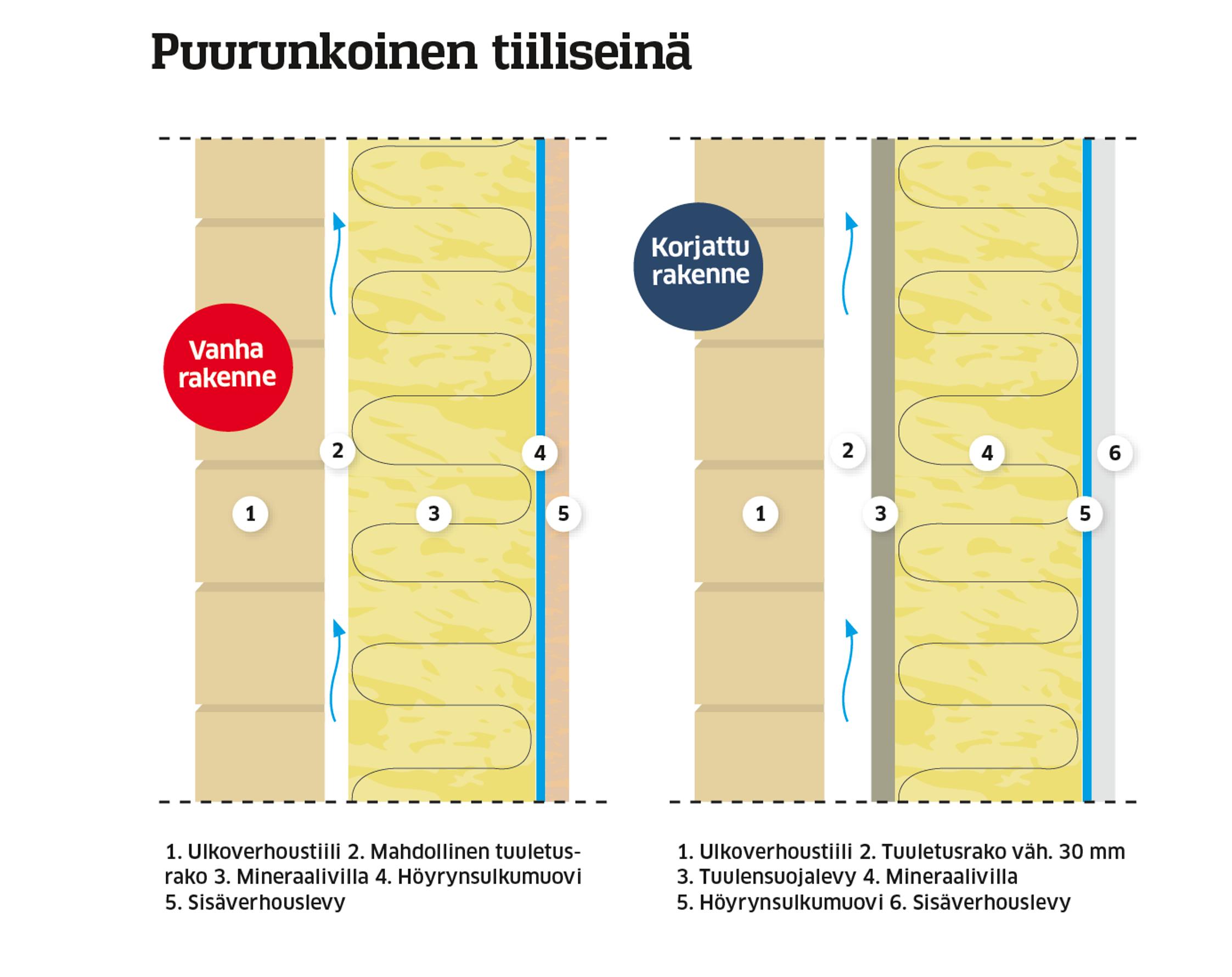 Jotta verhouksen ja tuulensuojan välissä oleva tuuletusrako hoitaisi tehtävänsä, sen tulisi olla ainakin 30 millimetrin suuruinen.