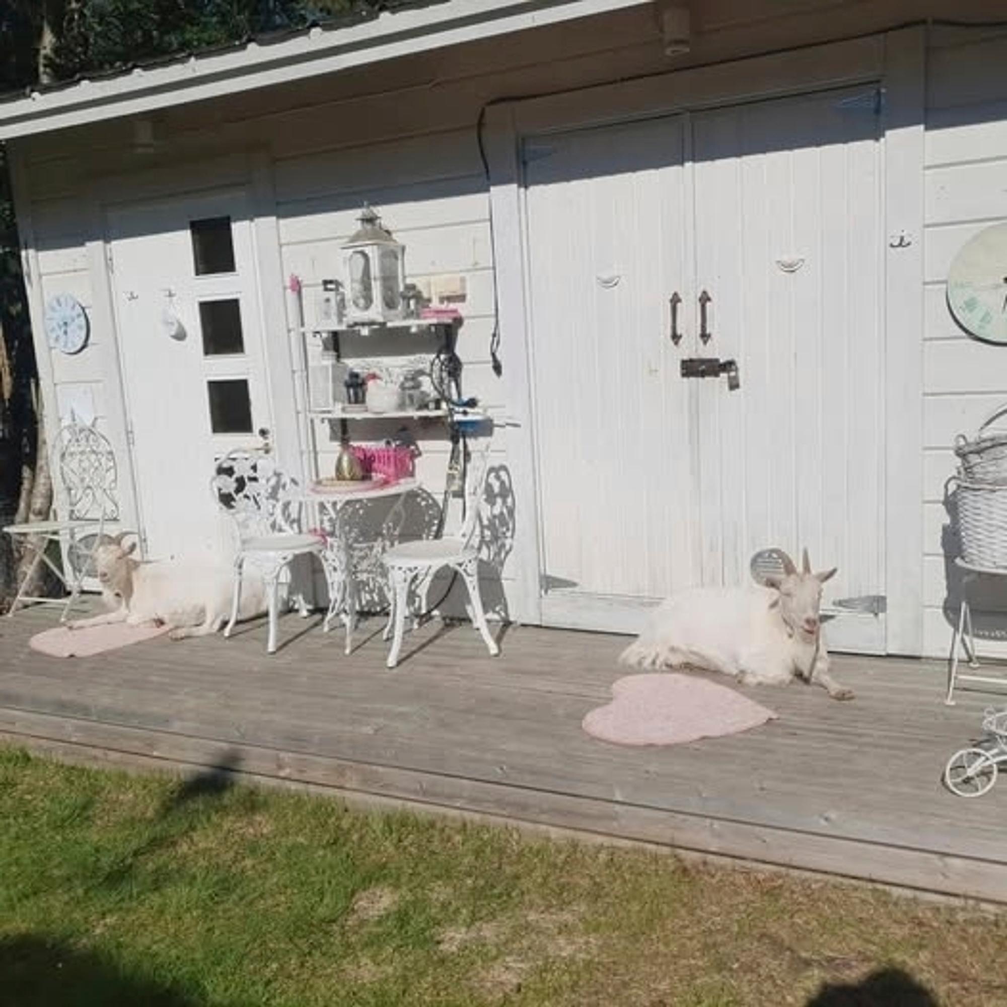 Kuusi kanaa, kaksi vuohta ja kaksi kissaa! Tiina Haatajan seuralliset eläimet pyörivät usein mökkipihassa odottamassa, mitä tekemistä Tiina heille seuraavaksi keksii.
