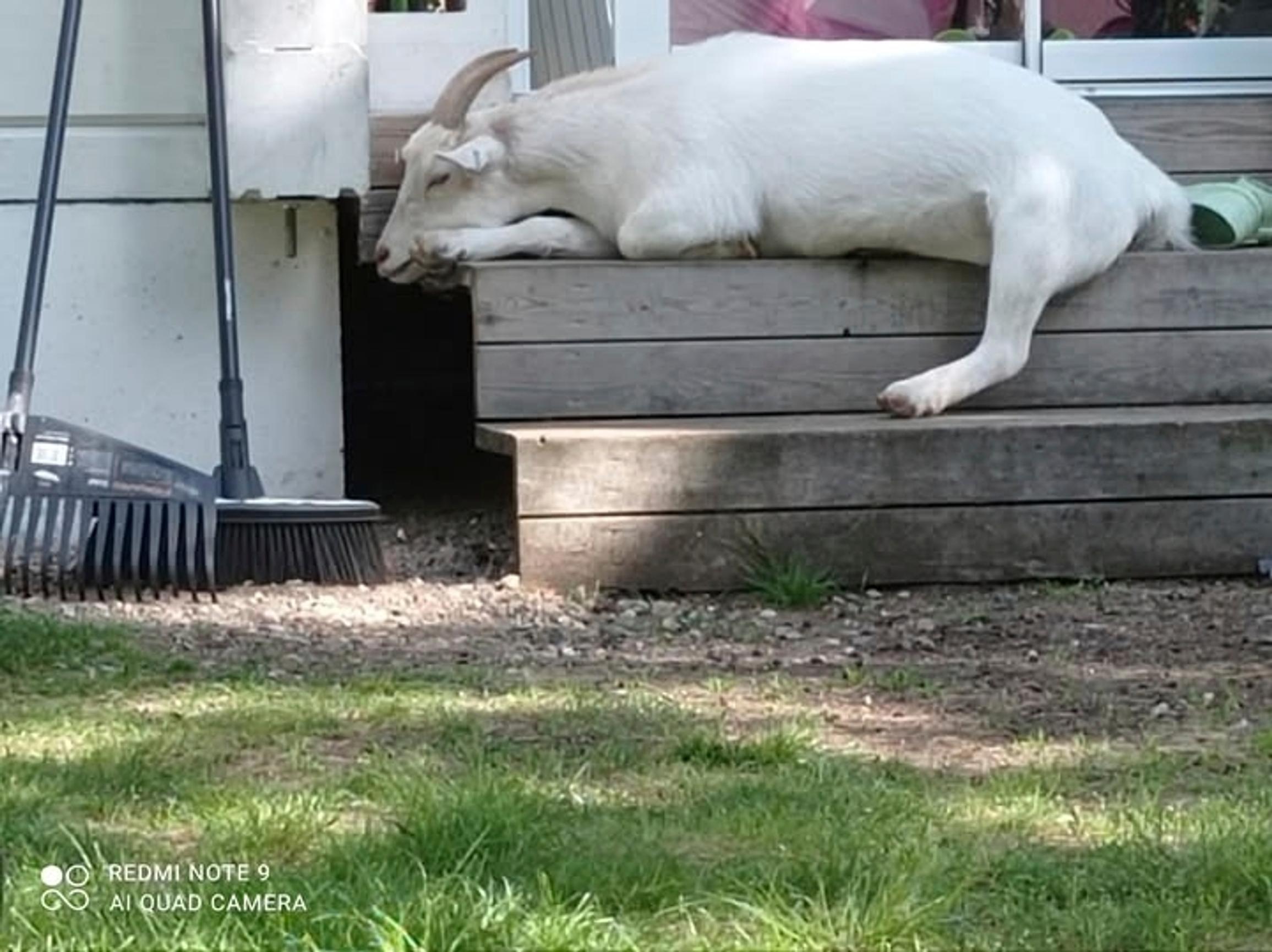 Samaan aikaan vuohet ovat hirveän paikkauskovaisia. He pysyvät aina pihapiirissä. Kun tulen kotiin, he makoilevat portailla odottamassa.