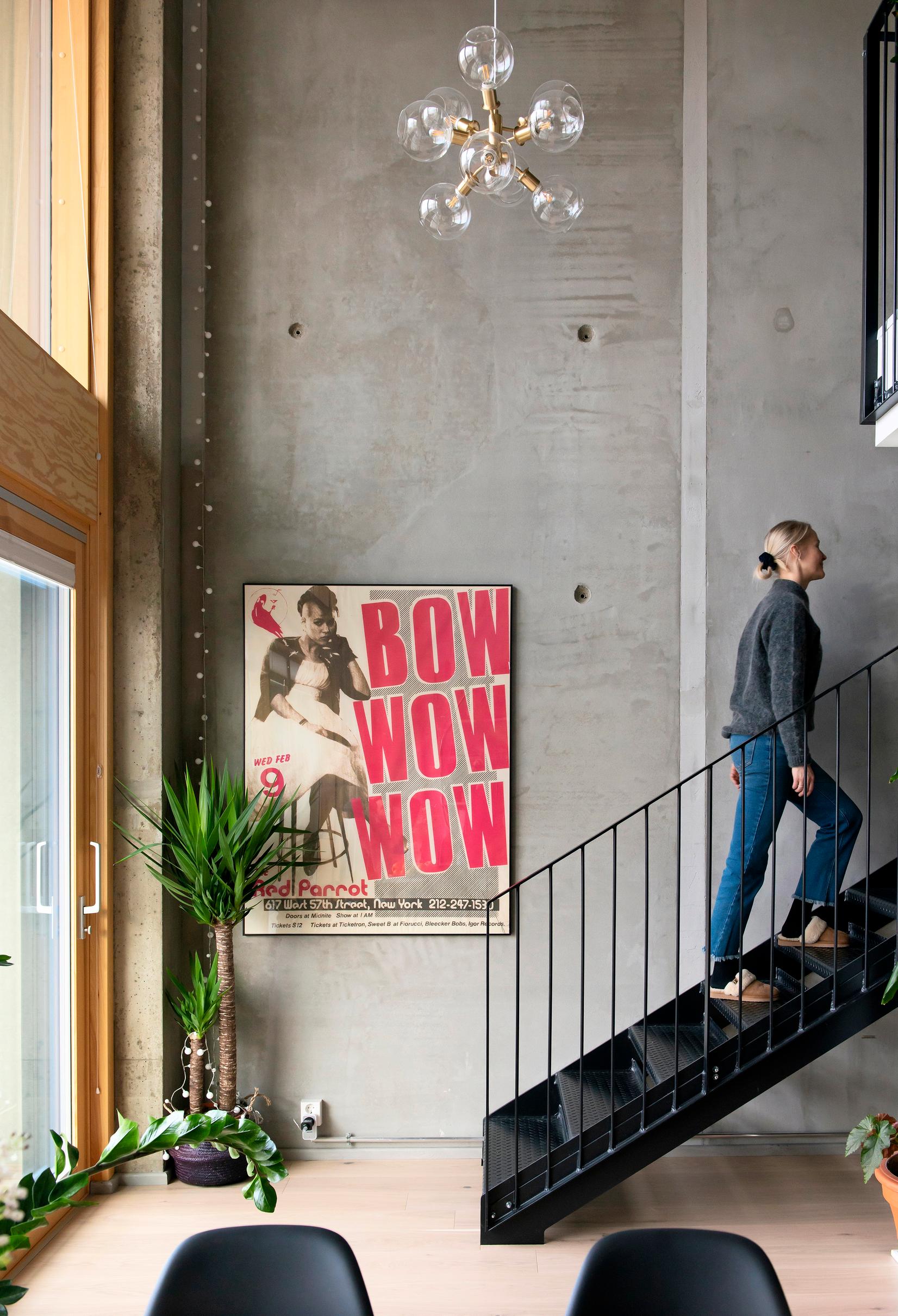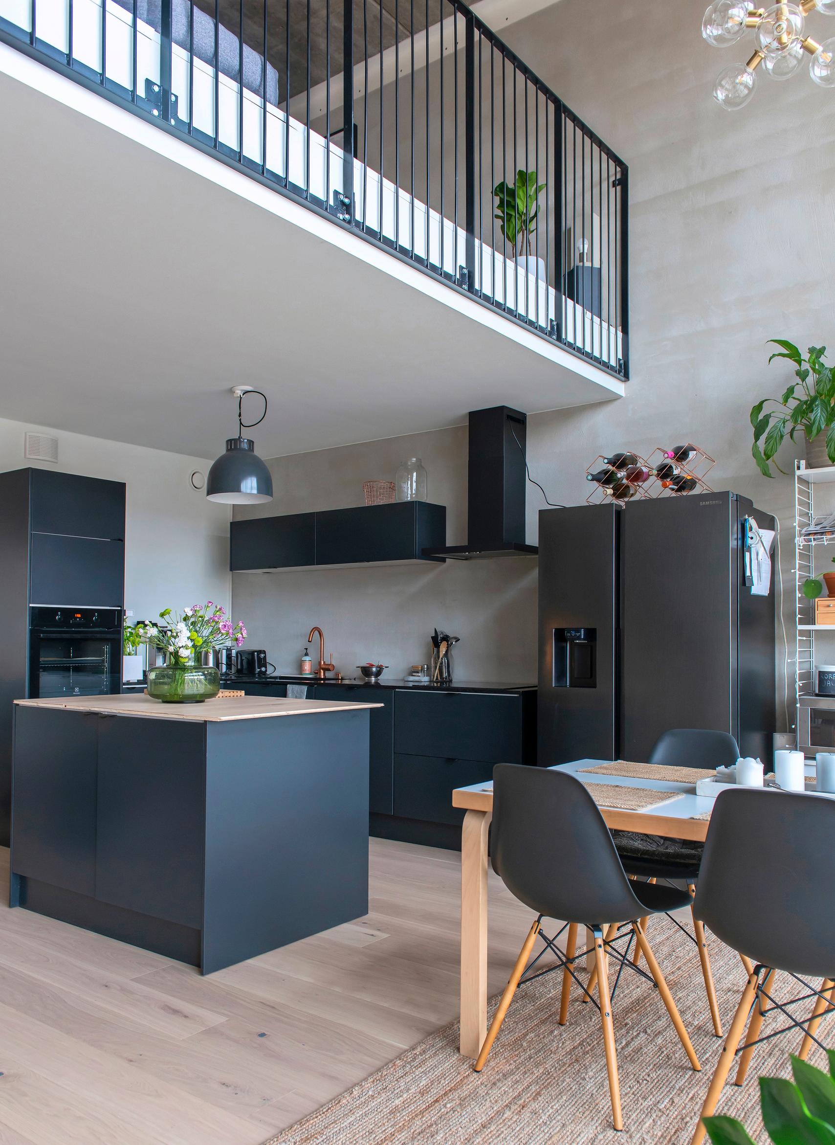 – Materiaalien valinta oli melko helppoa, sillä meillä on hyvin samanlainen maku Markuksen kanssa. Visio sopivasta loft-tyylistä oli selkeä, ja olimme ehtineet hyvin kartoittaa, mistä pidämme, Tiina kertoo.