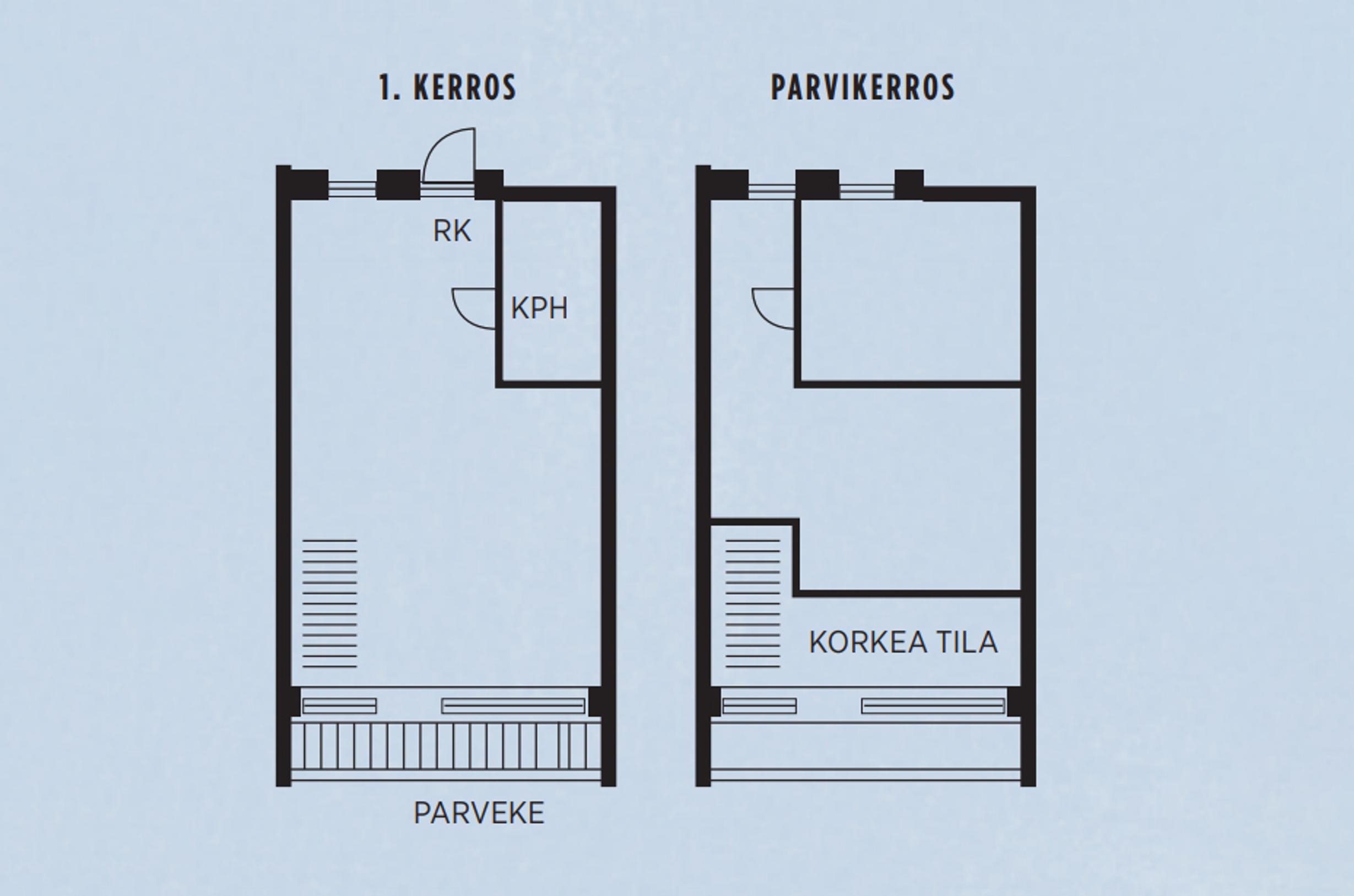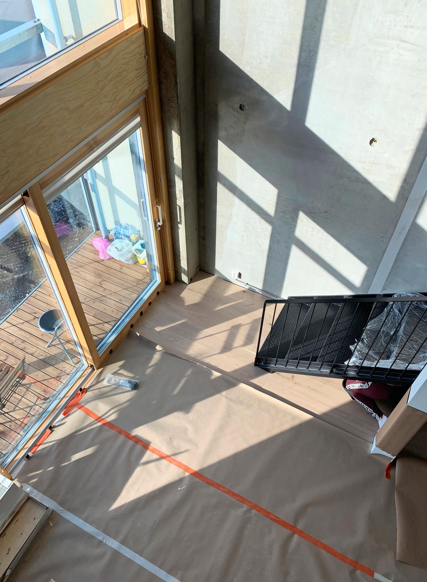 Raakatilaan oli valmiiksi suunniteltu kolme erikokoista parvea, joista asukkaat saivat valita mieleisensä. Tiina ja Markus halusivat omaan kotiinsa suurimman parven, joka on pinta-alaltaan kaksi kolmasosaa varsinaisesta lattiapinnasta. Asuntoon jäi silti mukavasti myös korkeaa tilaa.