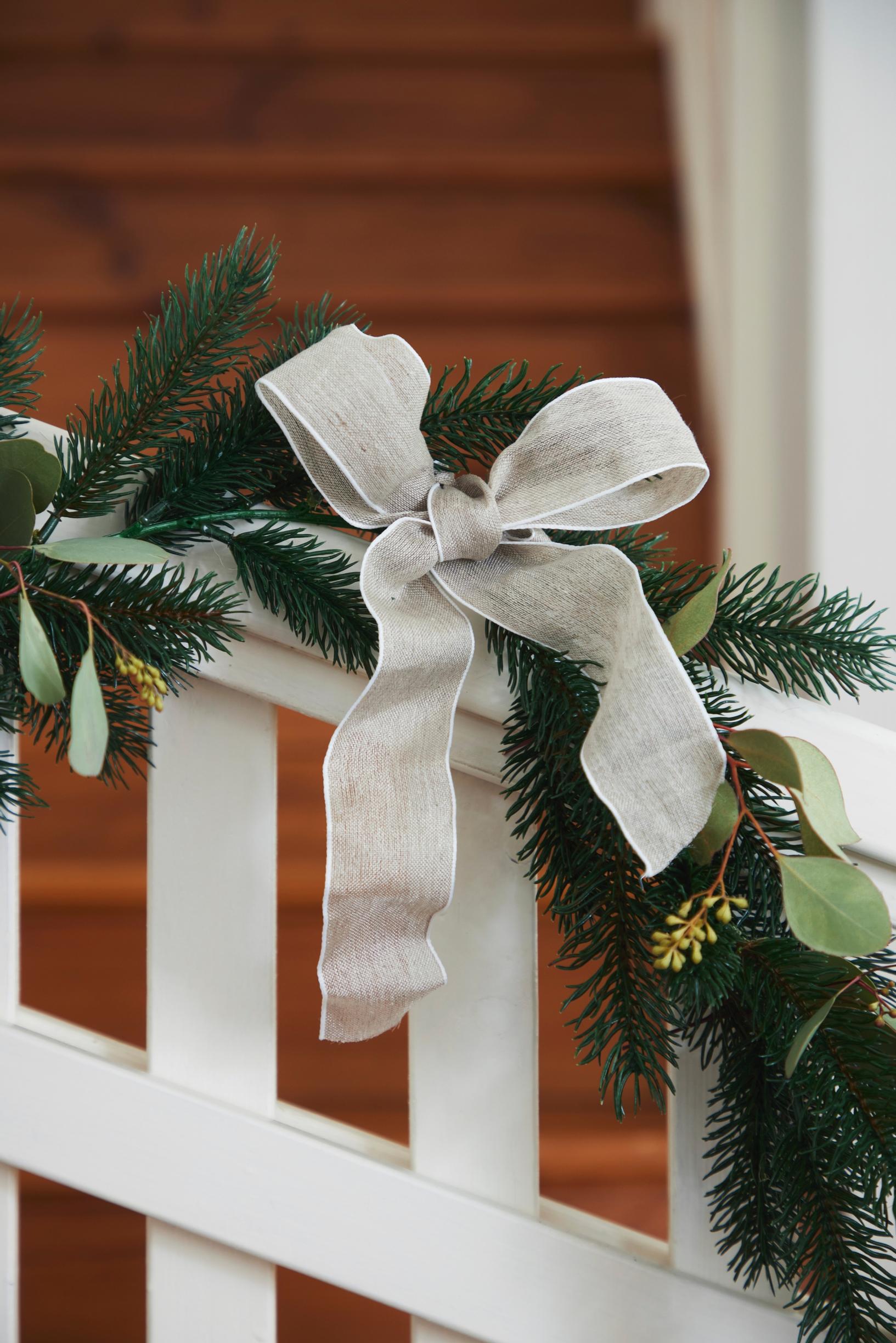Varsinaisia joulukoristeita on vain niukasti, lähinnä joulukuusen palloina ja yksittäisinä katseenvangitsijoina. Rusetteja on sitä enemmän. Niitä on sidottu silkkisistä ja samettisista nauhoista kaikkialle: joulukuusen latvaan, kransseihin, lampunjalkoihin ja ovenripoihin.