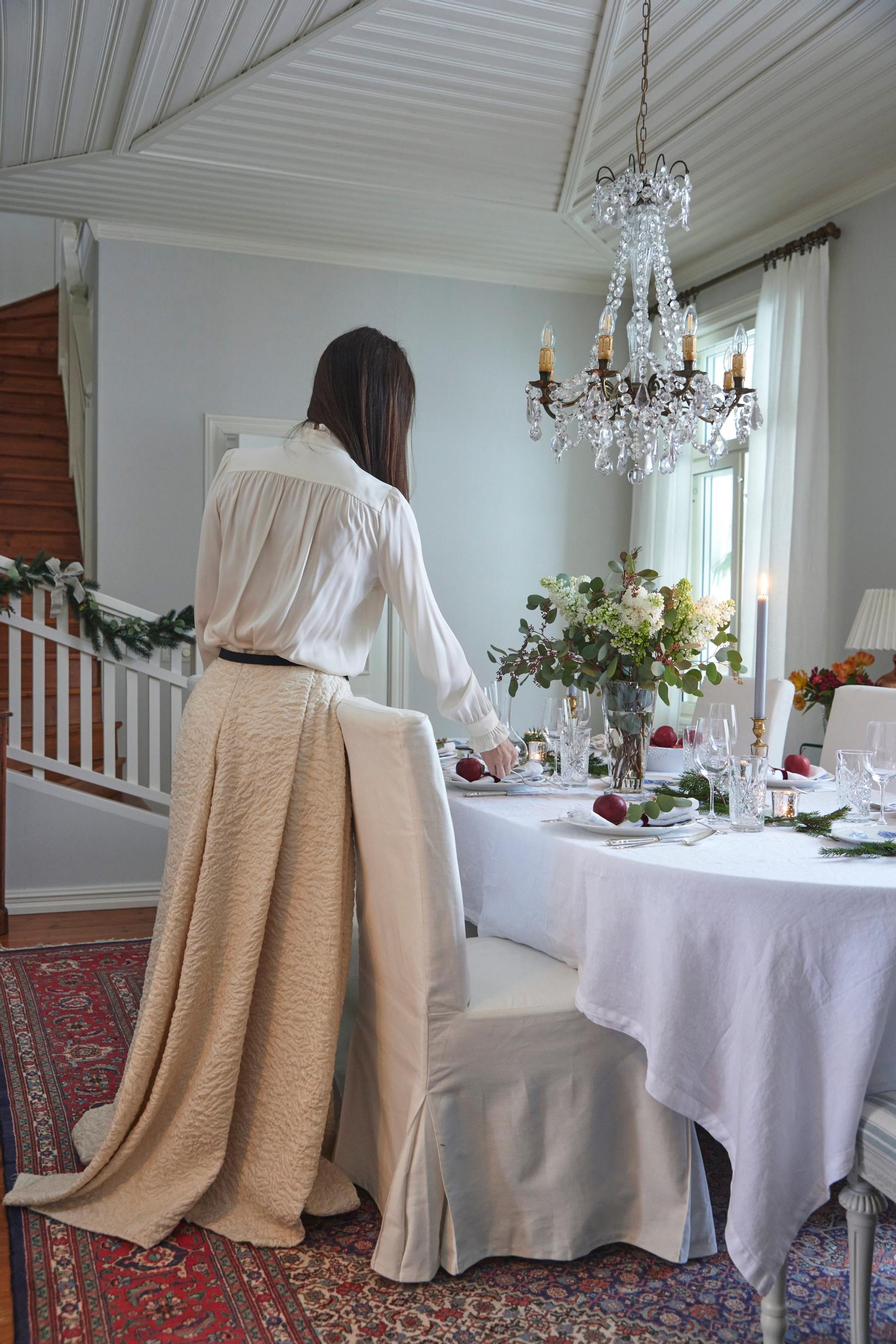 Kodin koristelusta vastaa tänä jouluna perheen hyvä ystävä Elina Siltanen-Sjöberg. Sisustusarkkitehtina työskentelevä Elina tunnetaan tuttavapiirissään taitavana tunnelmanluojana, tyyliniekkana ja armoitettuna koristelijana, ja siksi moni turvautuu mielellään hänen apuunsa.