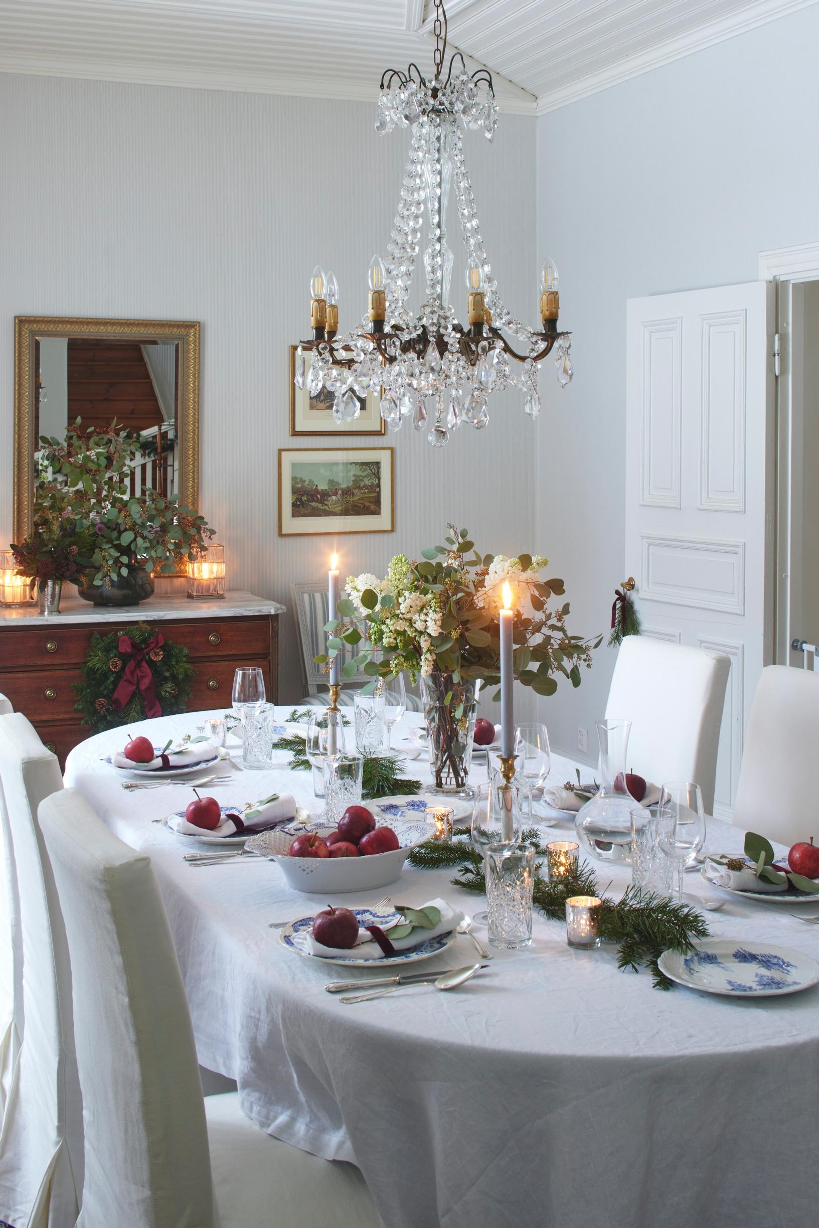 Aamiaisen jälkeen on tapana ulkoilla raikkaassa maalaismaisemassa ja palata sitten kuistille juomaan kuumaa kaakaota ja mutustelemaan pipareita ja punaposkisia omenoita. Myöhemmin siirrytään ruokasaliin ison ruokapöydän ääreen, johon on katettu Davenportin sinivalkoiset astiat – samat kuin lukuisina muinakin jouluina ja jo edellisten sukupolvien aikana. Kalaisan aterian äärellä viihdytään tunti jos toinenkin kynttilänvalon loisteessa.