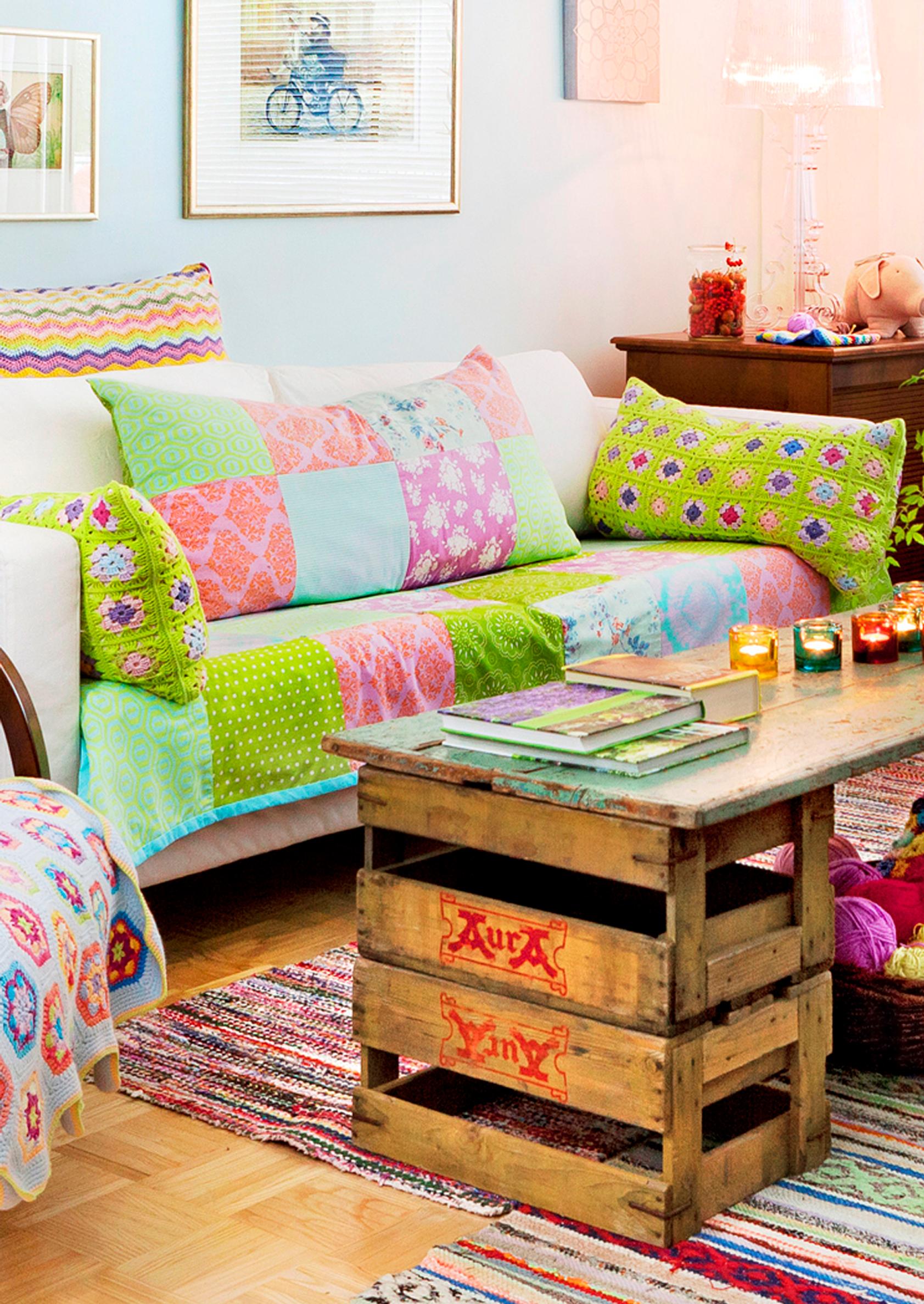 Jämäkankaat, -langat ja -tapetit saavat uuden elämän tilkkupintoina. Katso, mitä kaikkea hauskaa niistä saa aikaan!