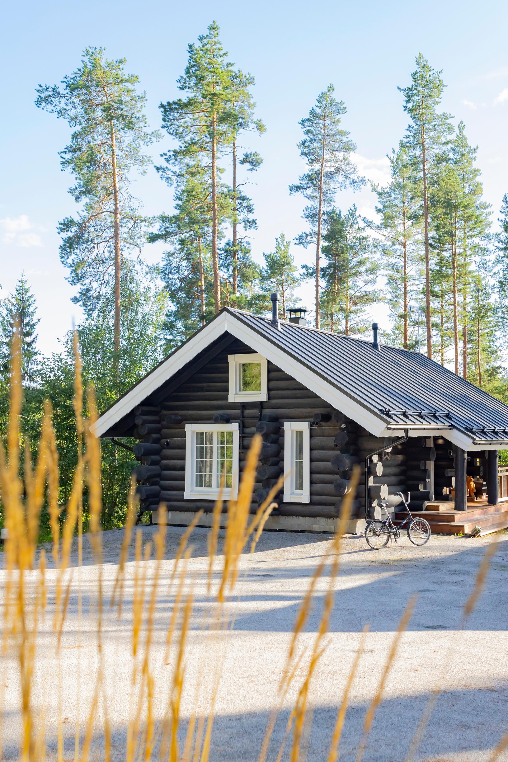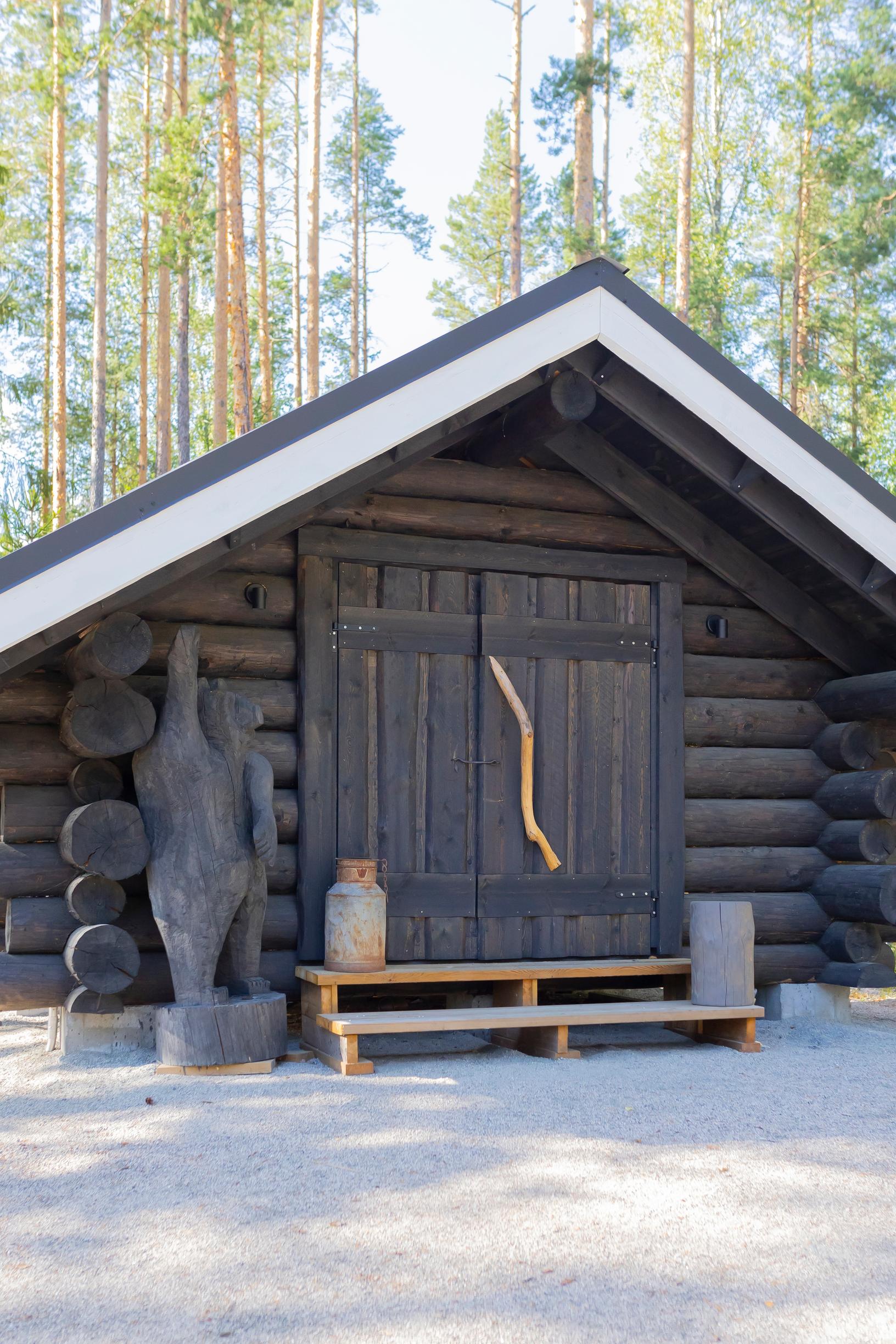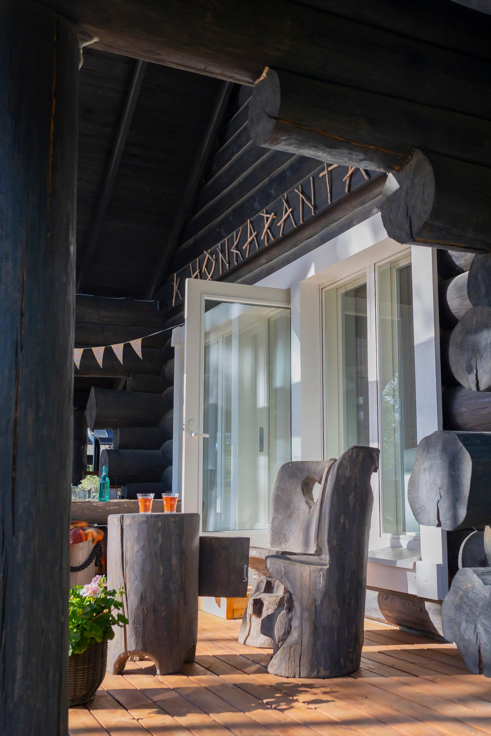 Hyppöset kokevat, että hirsimökissä on hyvä hengittää. Mieltä lämmittää myös ajatus siitä, että jokainen puu on veistetty ja jäänyt paikalleen tänne, missä ne ovat kasvaneet.