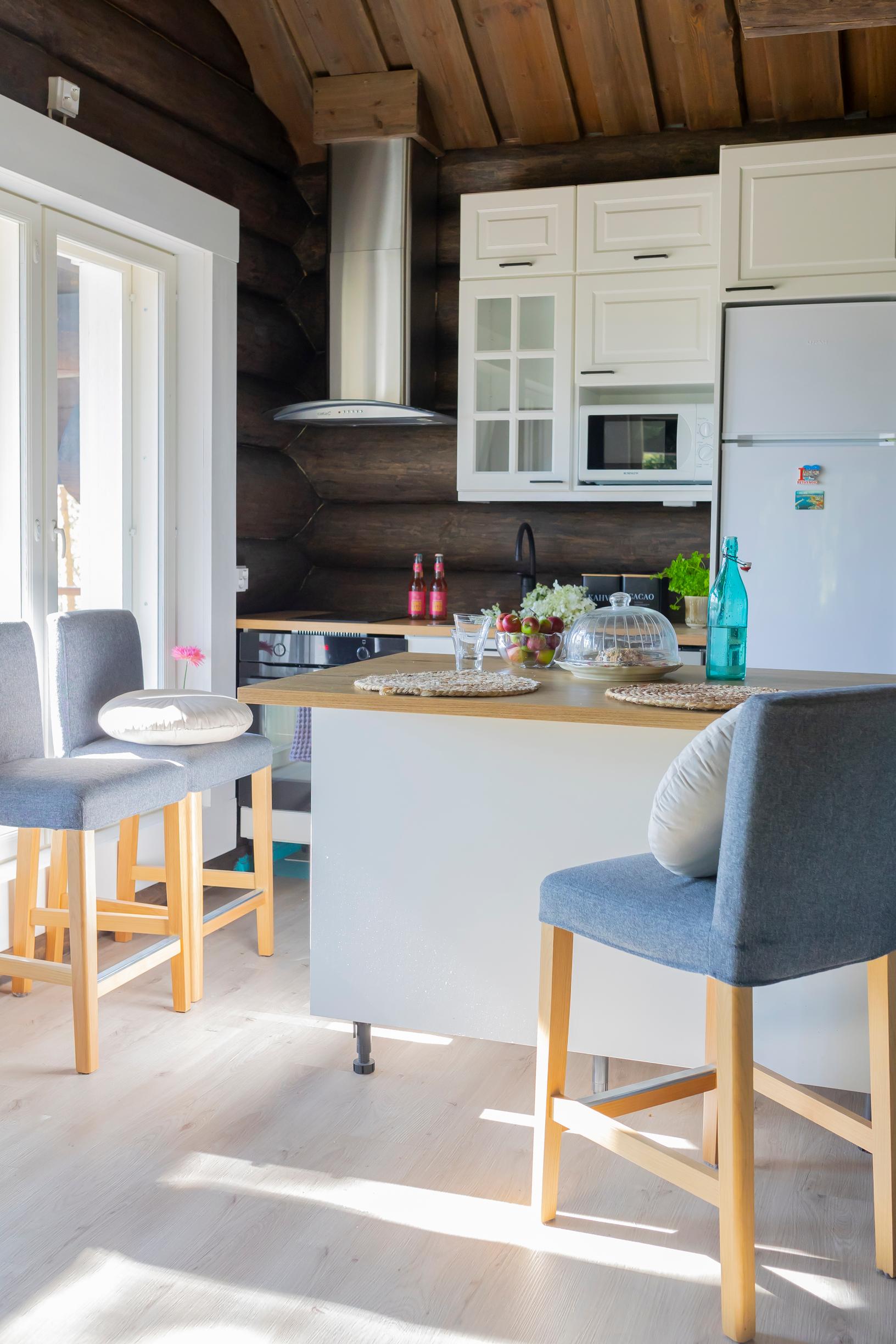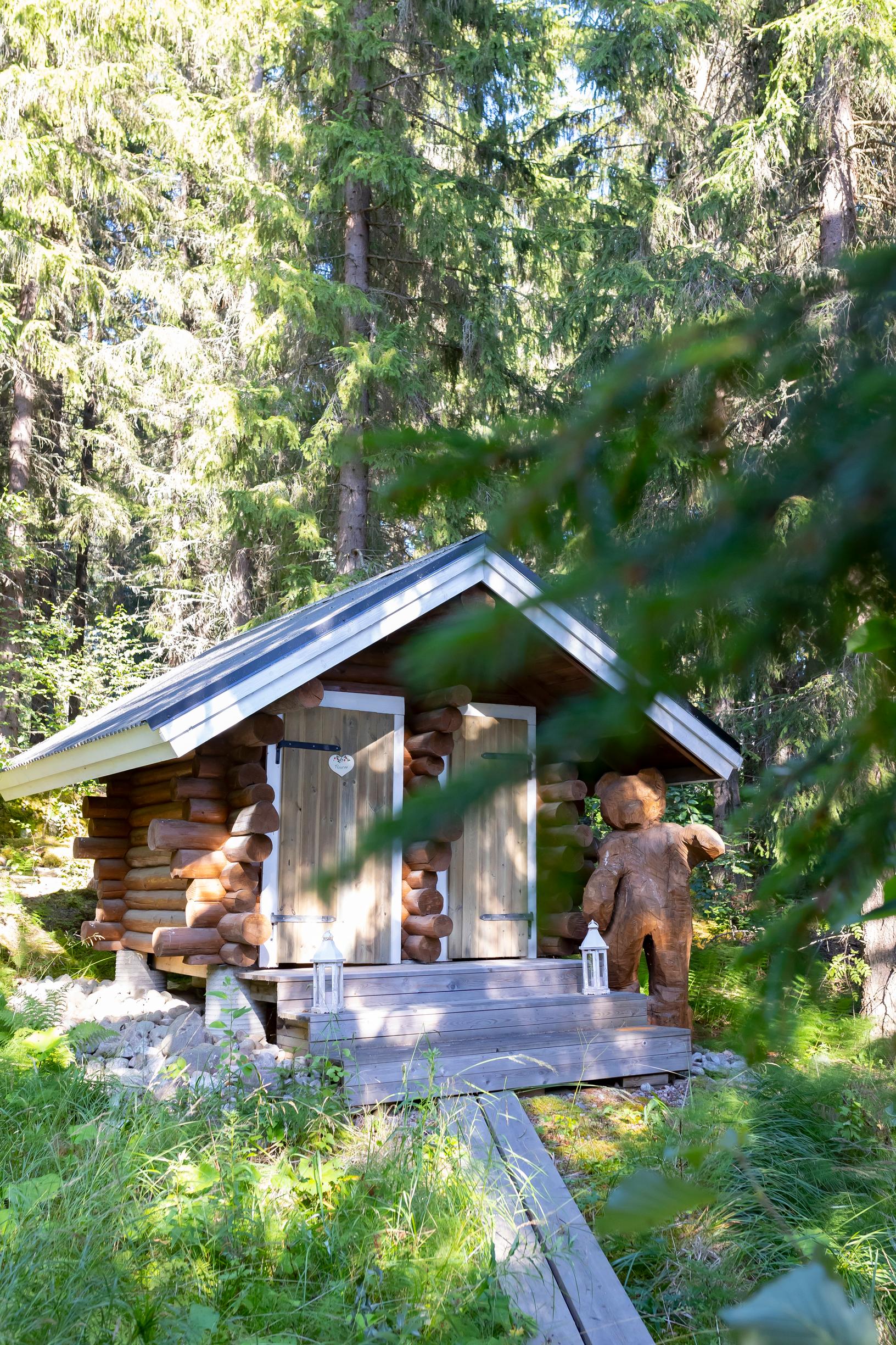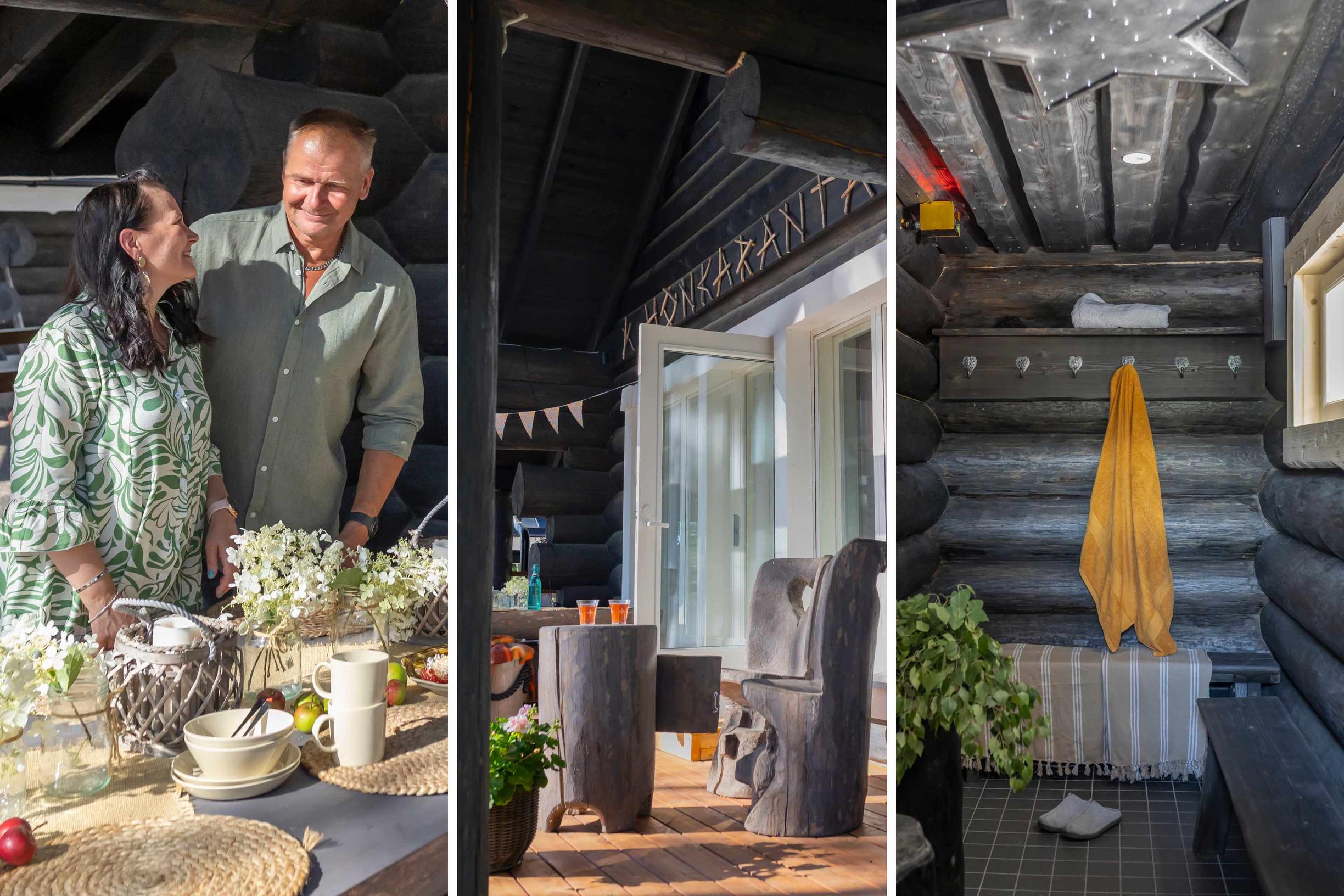 Hyppöset kokevat, että hirsimökissä on hyvä hengittää. Mieltä lämmittää myös ajatus siitä, että jokainen puu on veistetty ja jäänyt paikalleen tänne, missä ne ovat kasvaneet.