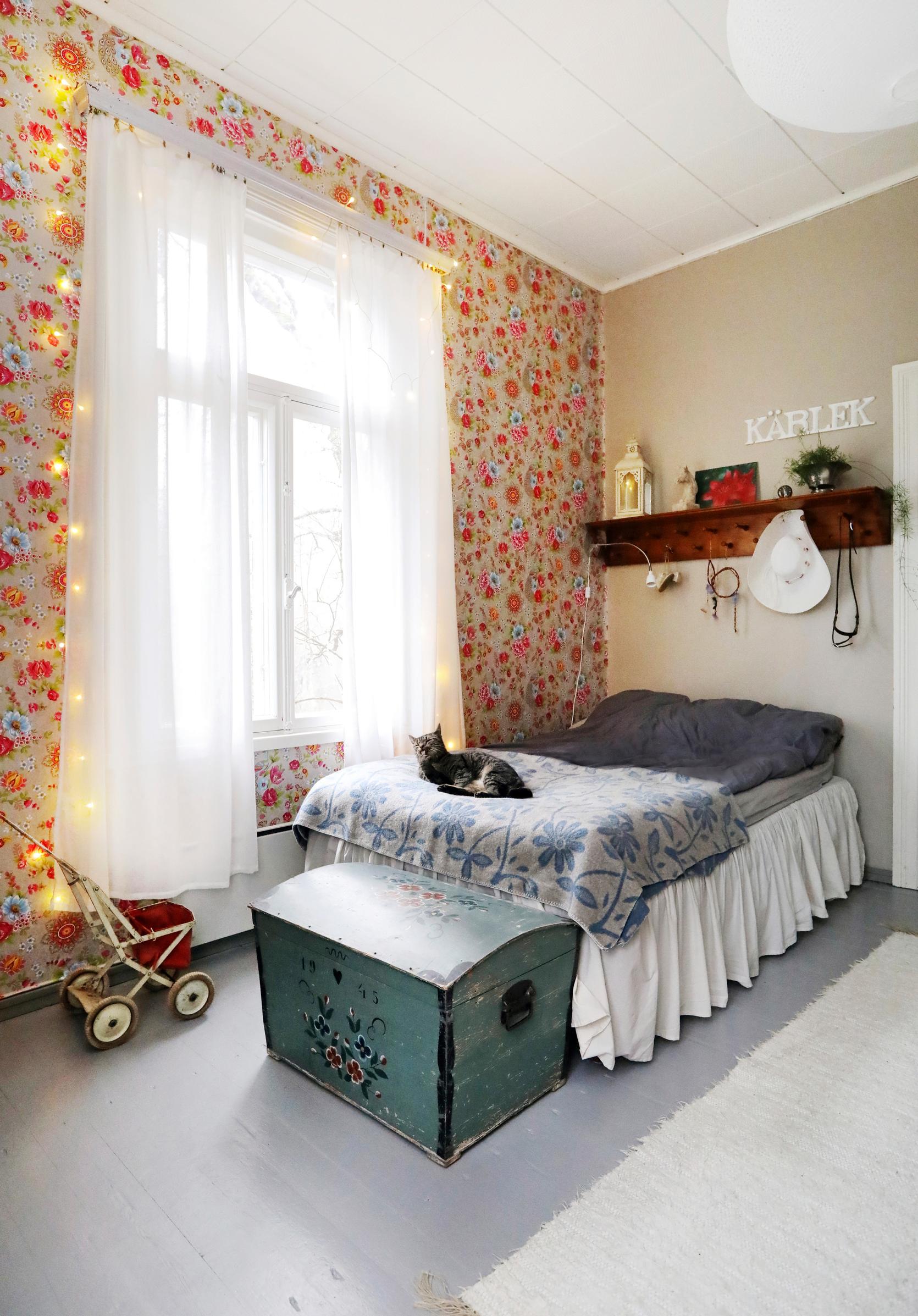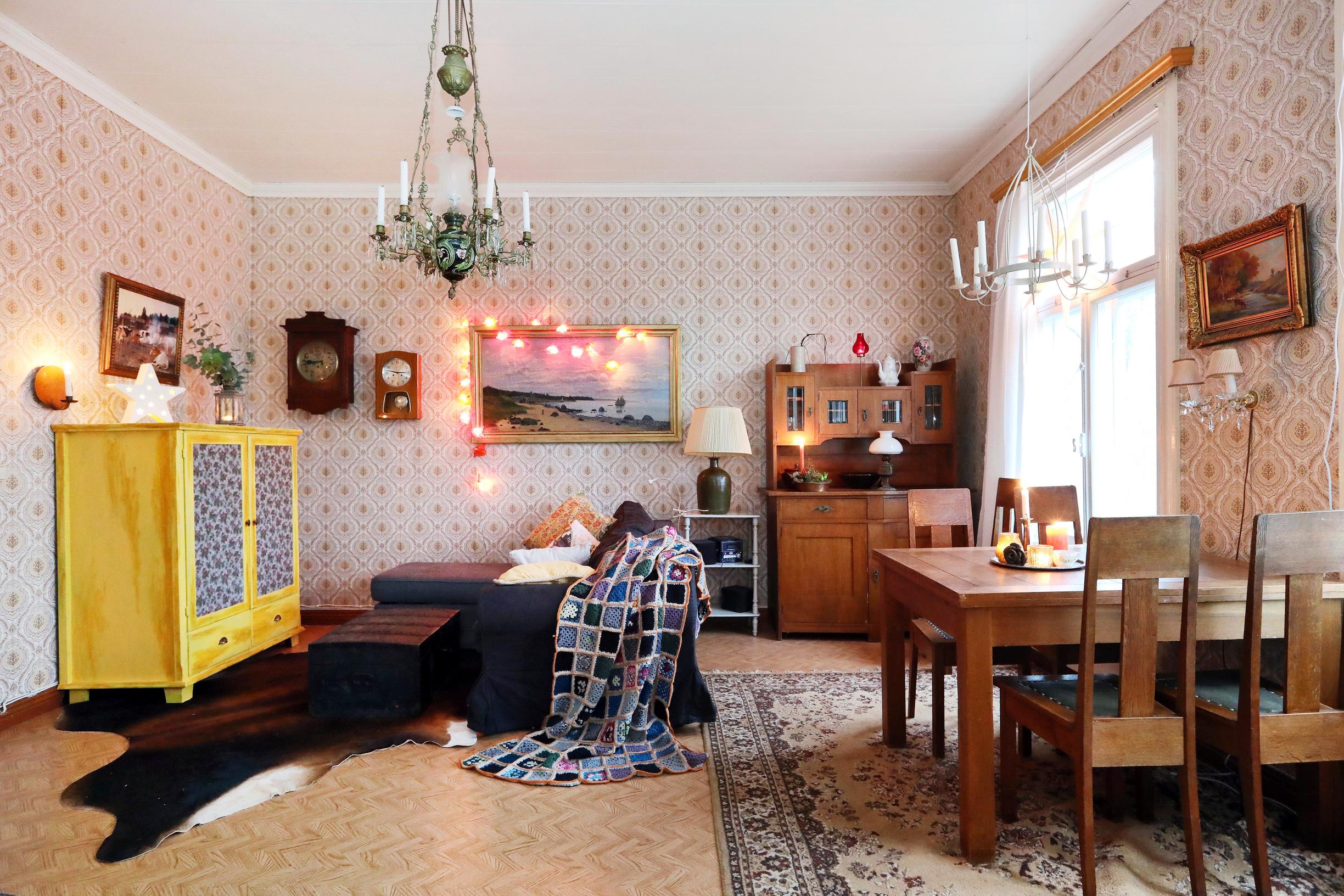 – Sotkun selvittämiseen meni monta kuukautta. Tarvittiin pientä remonttiakin. Halusin pahalta haisevat muovimatot pois ja alkuperäiset puulattiat esiin. Se olikin oma lukunsa, sillä makkarin maton alla oli inhottavaa mössöä. Tolua kului litroittain ja hankaussieniä ainakin kymmenen pakettia. Kova työ kuitenkin kannatti.