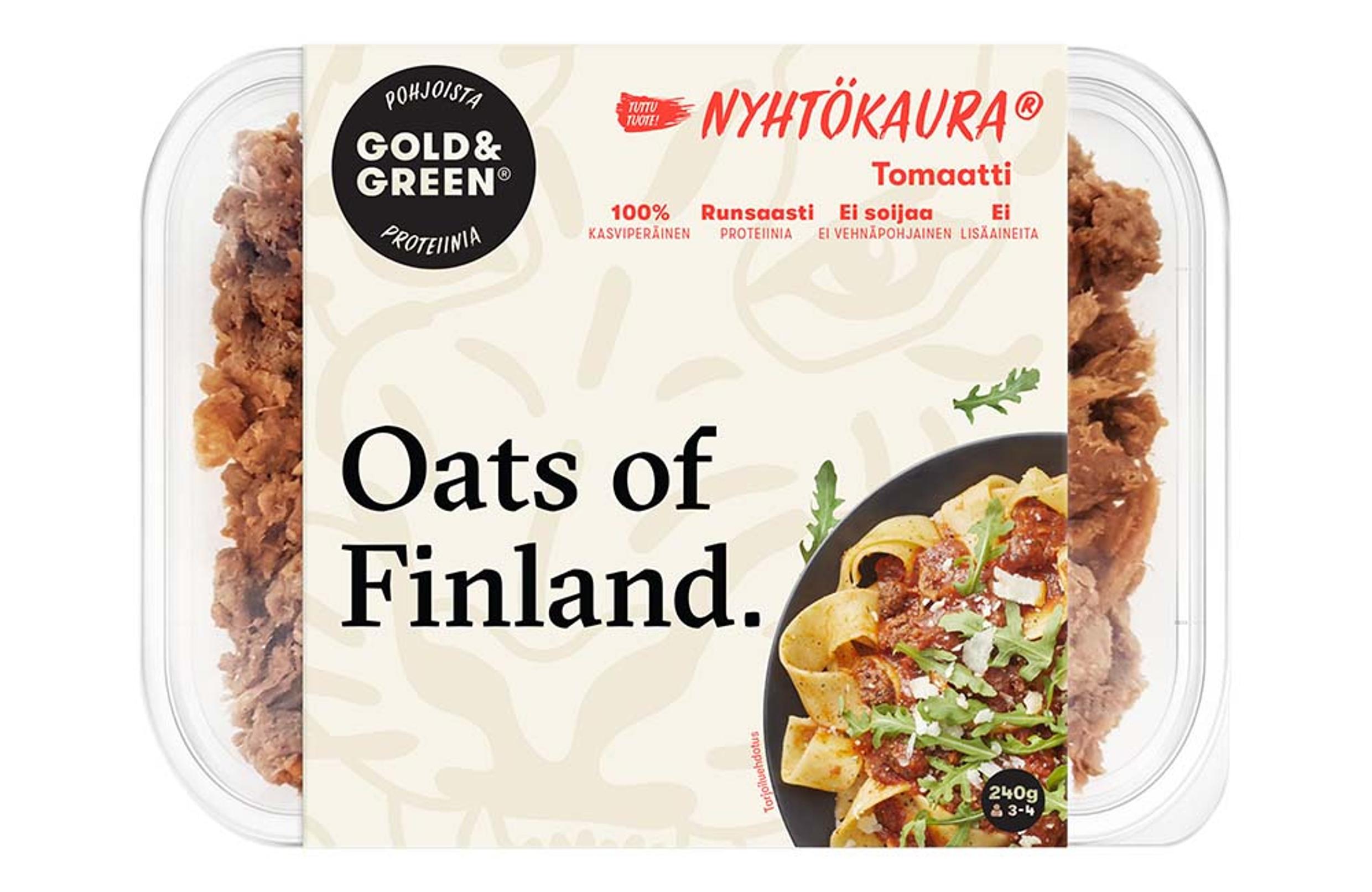 Nyhtökaura tomaatti "Käytän tätä valmiiksi maustettua tomaattinyhtökauraa niin, että paistan sen nopeasti pannulla ja laitan sen sitten ilman maustamista tai muita lisukkeita salaatin päälle. Salaatiksi käy ihan mitä tahansa kaapista sattuu löytymään: vähän salaatinlehtiä, kurkkua ja paprikaa. Jos jaksan tai ehdin, annoksen kruunaa pikapasta."