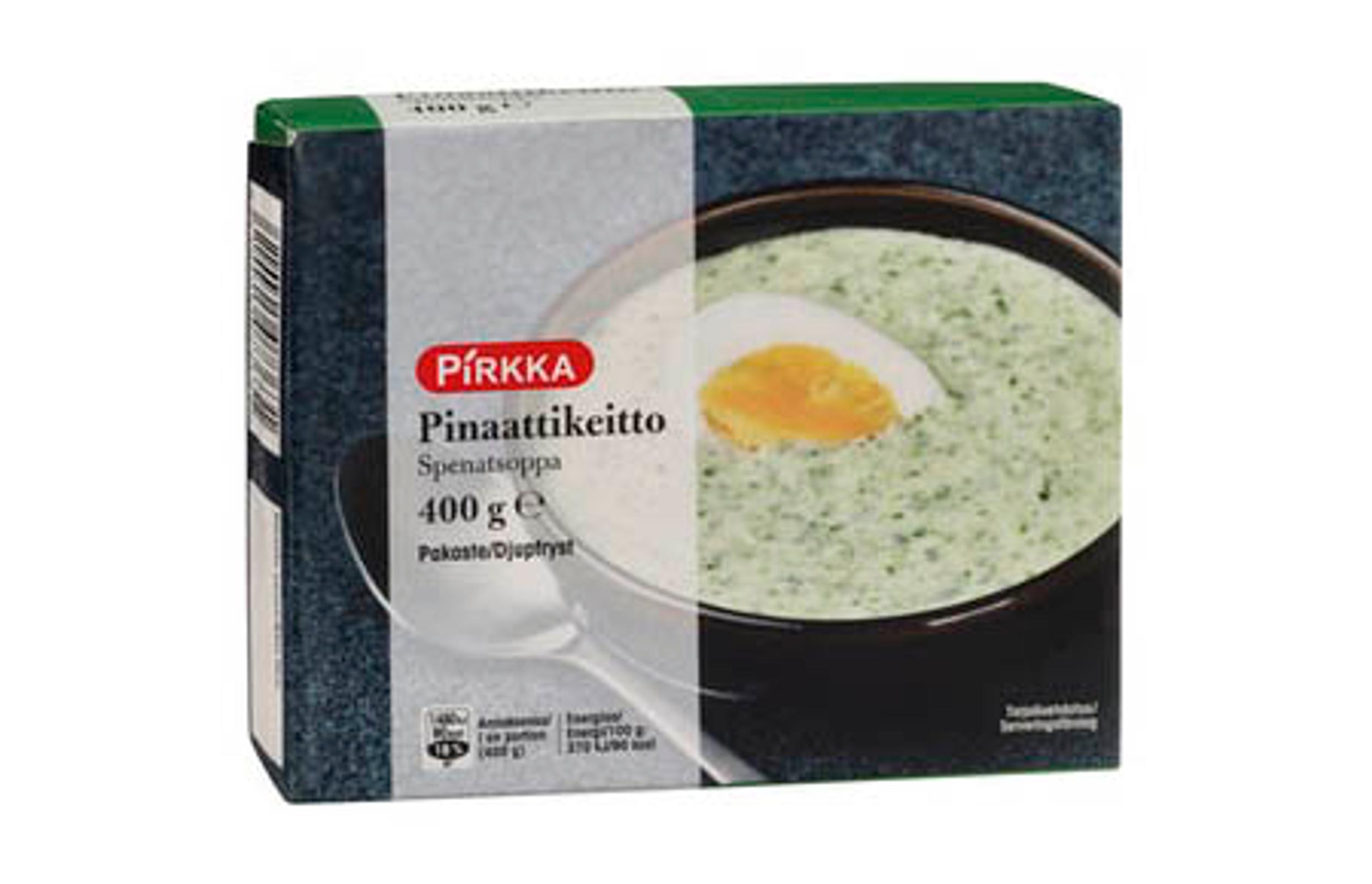 Pirkka-pinaattikeitto "Helpoin sulatettava, koska on muista pinaattikeitoista poiketen ohut keittopala ."