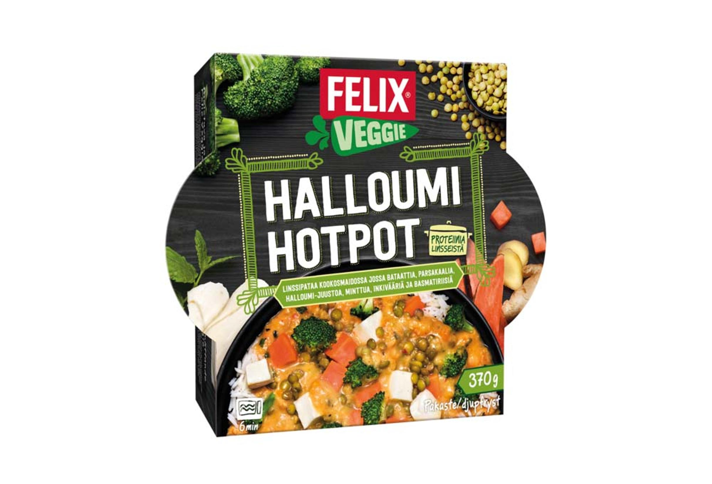 Felixin Halloumi hotpot "En yleensä syö valmisruokaa, mutta kun syön, nappaan pakastealtaasta Felix Halloumi Hot Potin. Se on hyvää kasvisruokaa!"