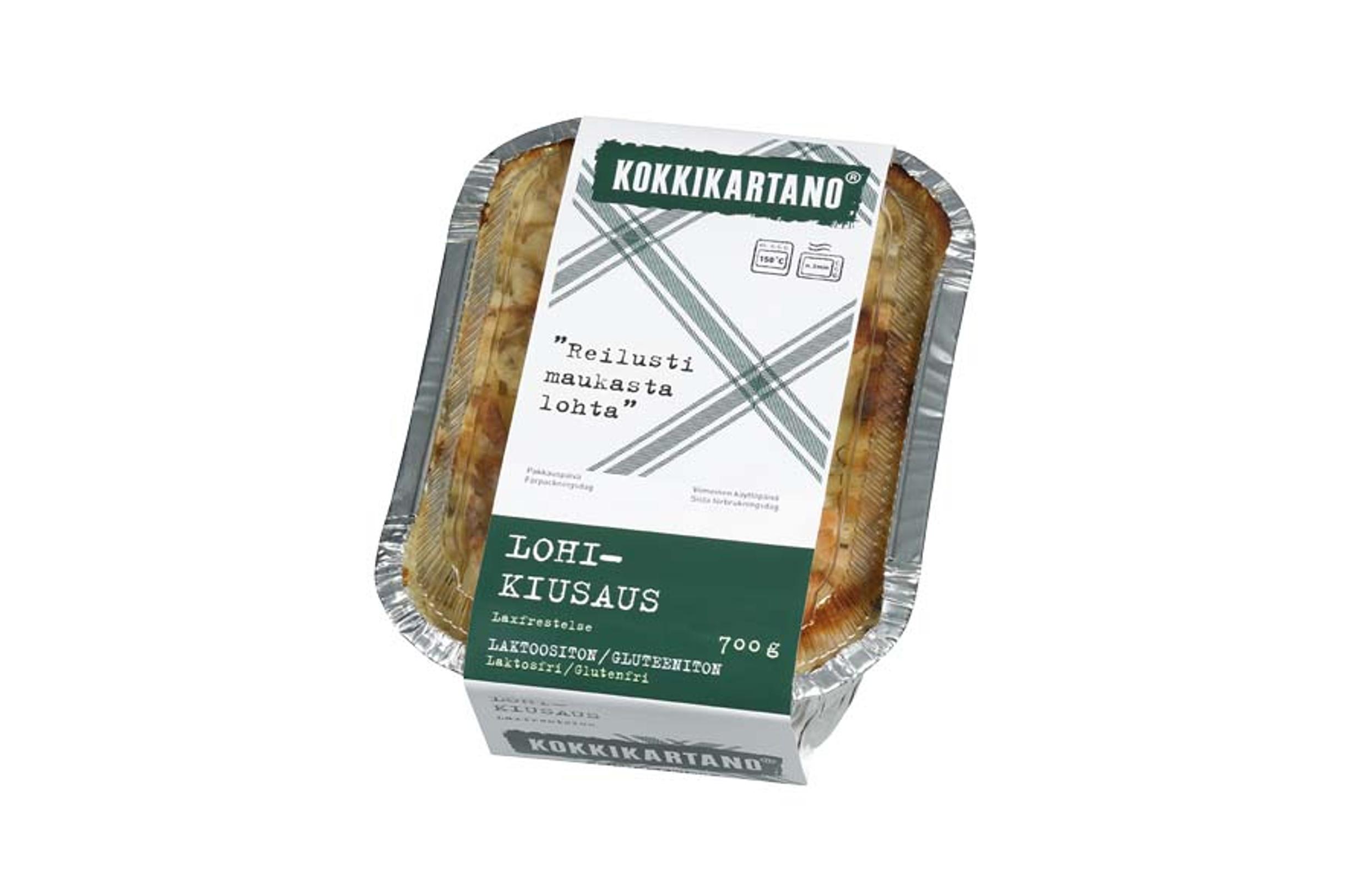 Kokkikartanon kirjolohikiusaus "Tämä ruoka tulee pöytään mikron kautta parissa minuutissa, maistuu itse tehdyltä ja tuoreelta. Kiusaus ei ole kuiva tai liian rasvainen vaan ihanan kostea. Hintakaan ei huimaa päätä, kun miettii, mitä lohi maksaisi itse ostettuna ."