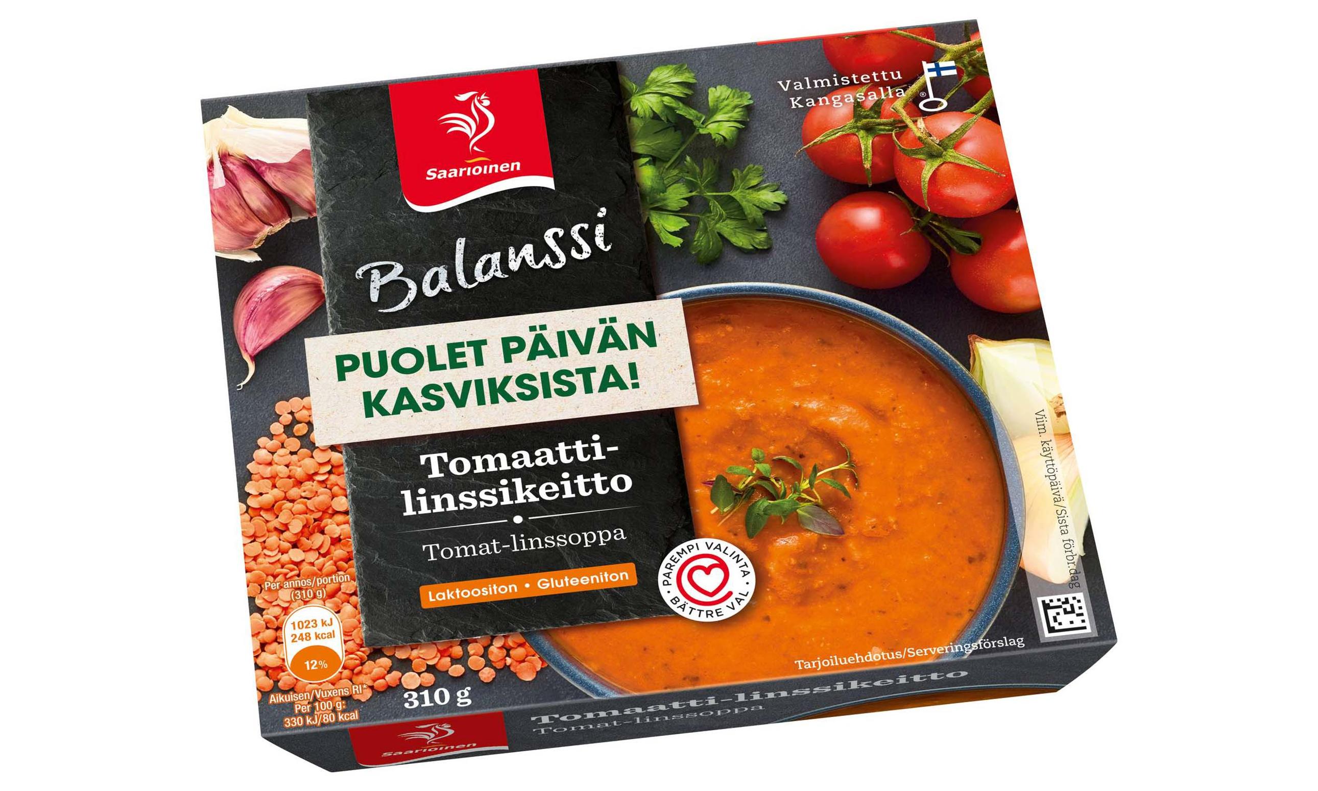 Saarioisten Balanssi-tomaattilinssikeitto "Tämä valmiskeitto on tosi hyvää ja täyttävää."