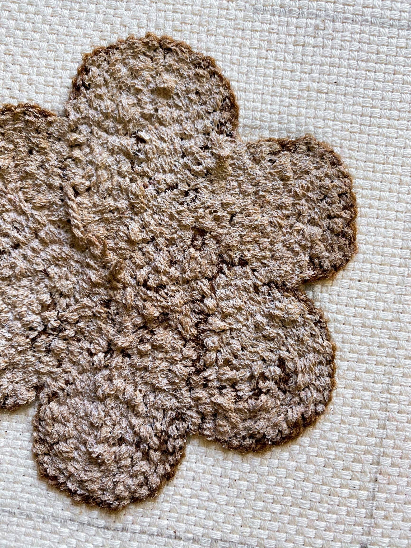 7. Leikkaa tuftauskangas kokoon 43 × 43 cm. Ompele reunat siksakilla, jotta ne eivät purkaudu.