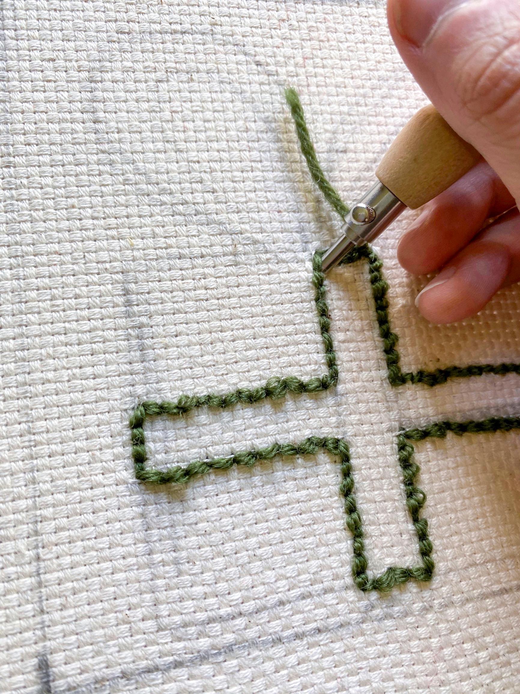 4. Tuftaa kuviot osio kerrallaan. Tee ensin alueiden ääriviivat ja jatka täyttämällä kohti keskustaa.