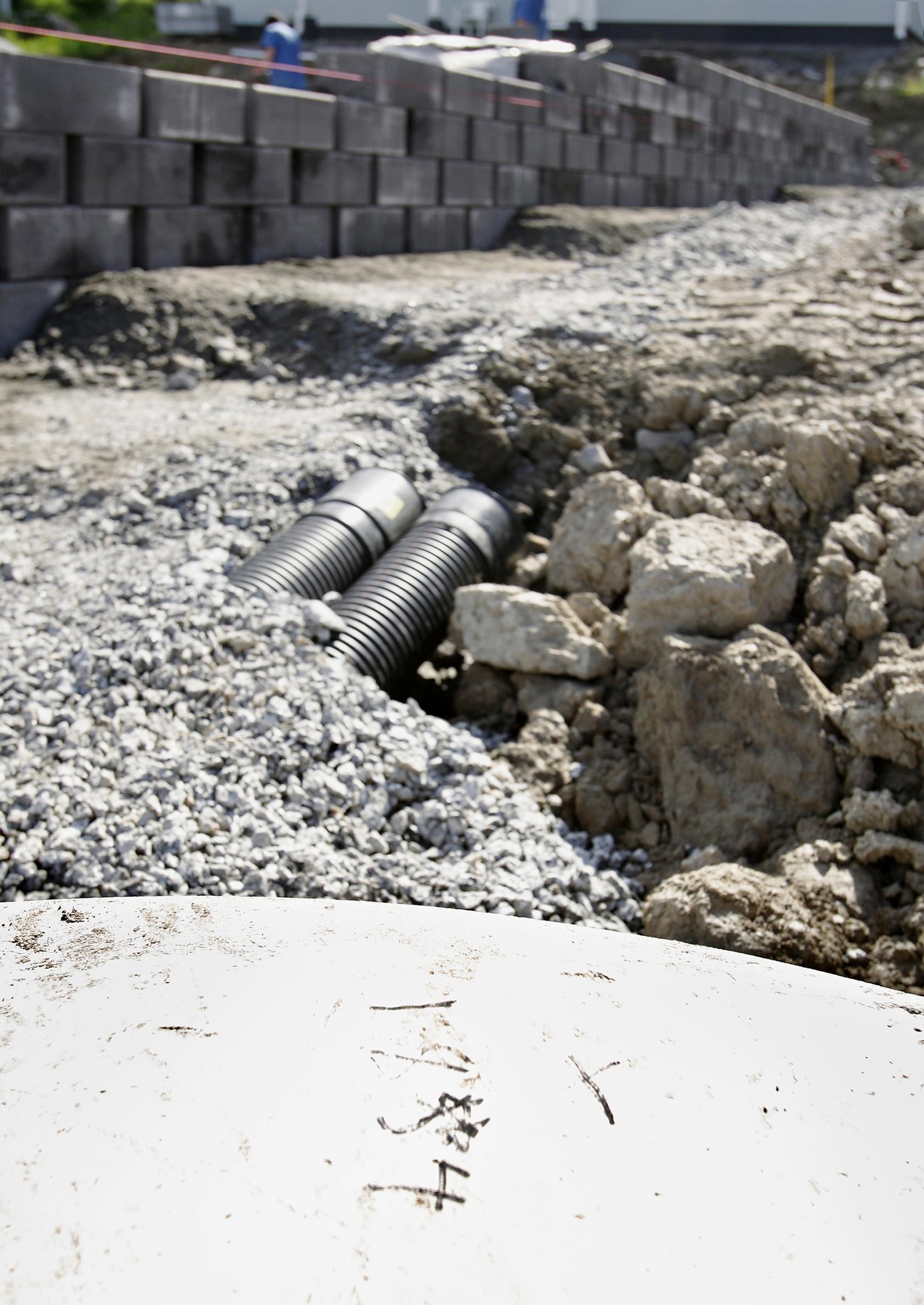 On tärkeää, että maan kuivatus varmistetaan. Tukimuurin taakse laitetaan sepelikerros, joka toimii pystysalaojana. Sepelikerroksen alle laitetaan vielä salaojaputki. Näin varmistetaan, että pohja ei roudi ja tukimuuri pysyy paikallaan.
