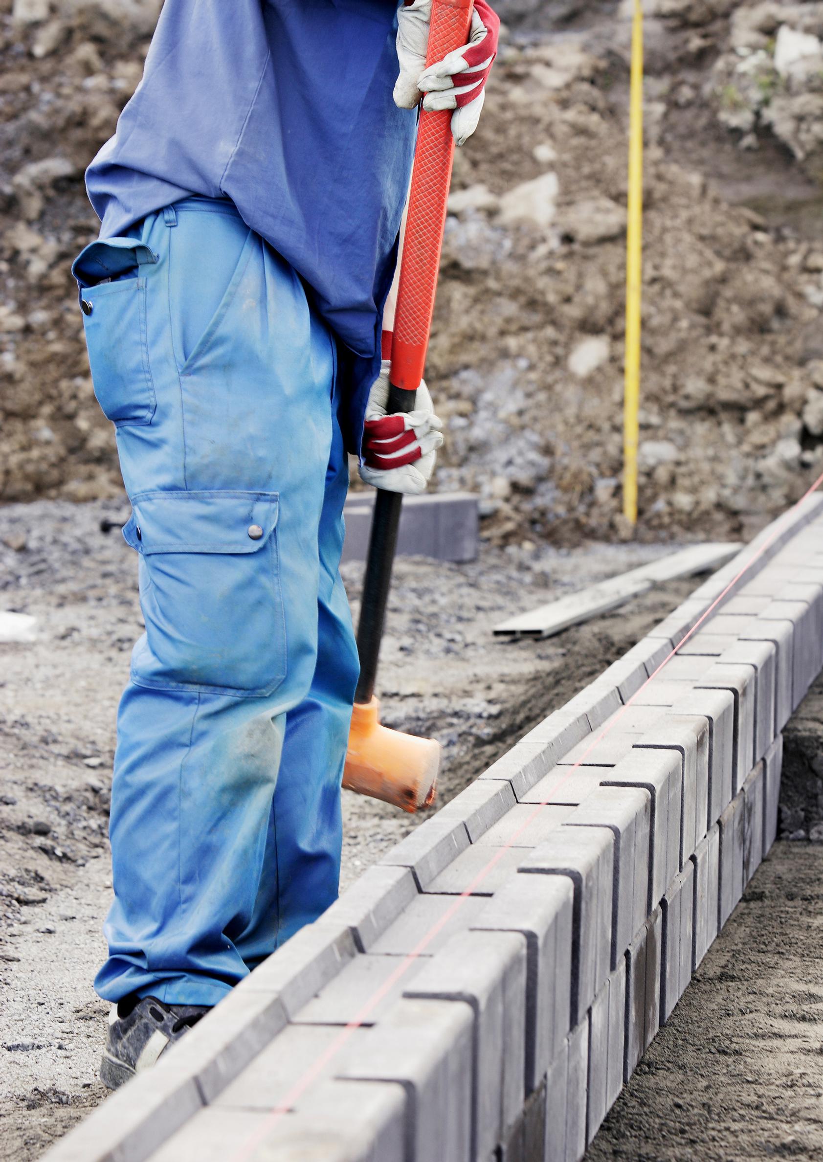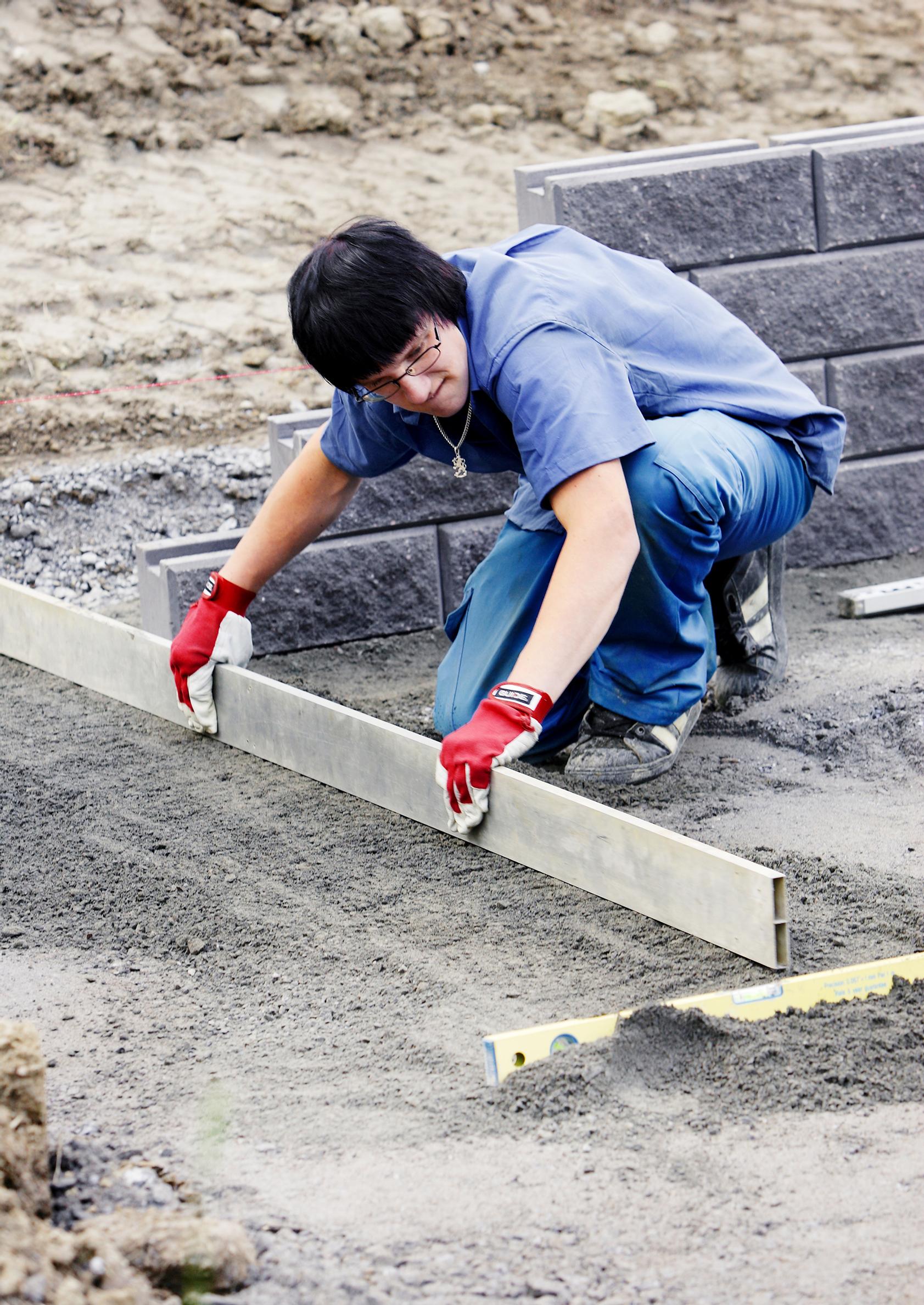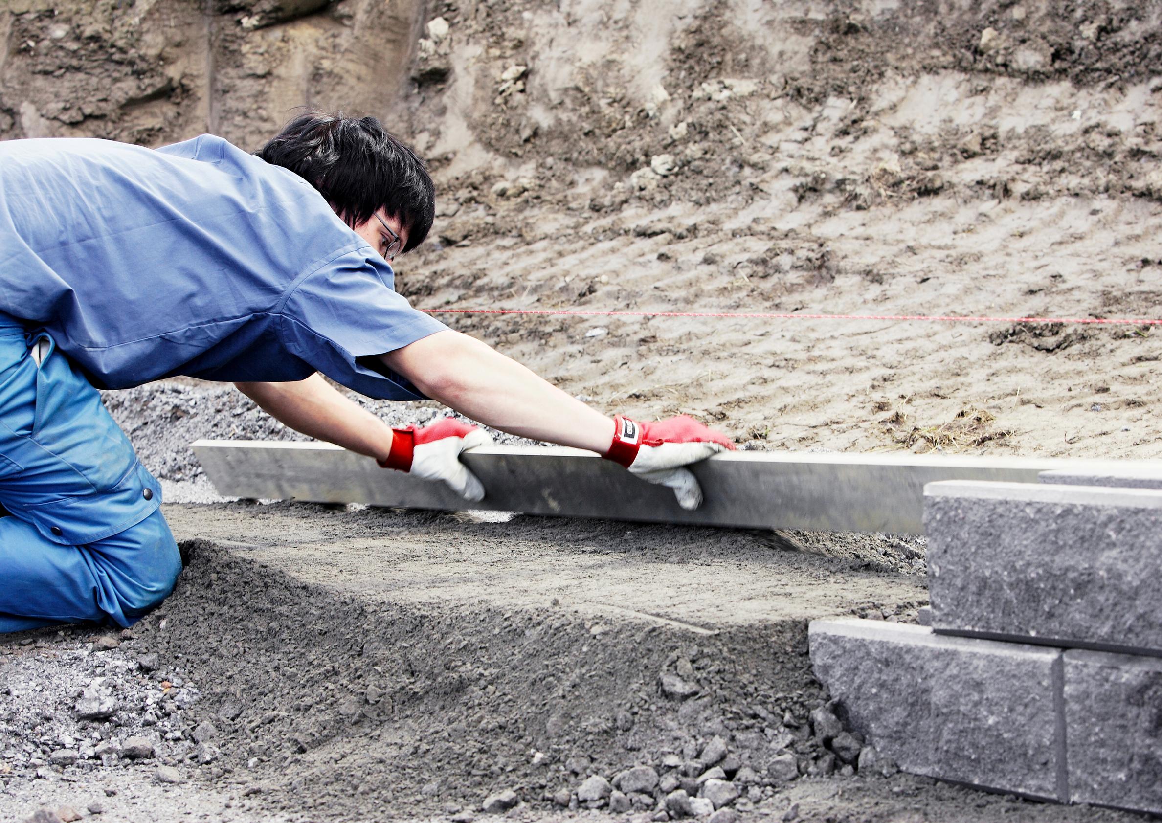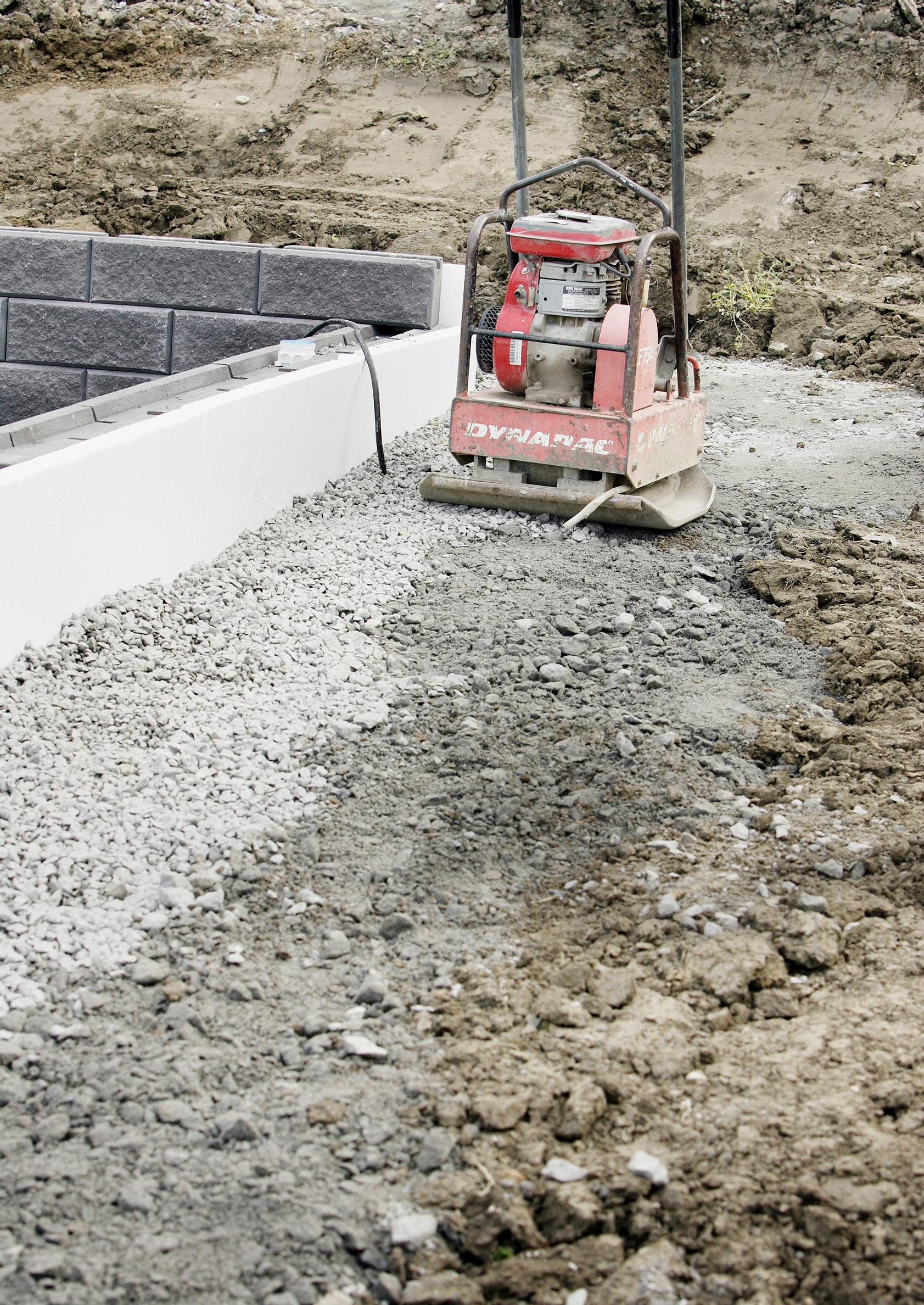 3. Kantava kerros tiivistetään hyvin. Se kastellaan sopivasti ja ajetaan läpi 100–150 kilon tärylevyllä kolmeen kertaan. Kantavan kerroksen yläpinta tasataan 20–30 millimetriä muurikiven alapinnan alapuolelle. Lopuksi kerros tiivistetään täryttämällä.