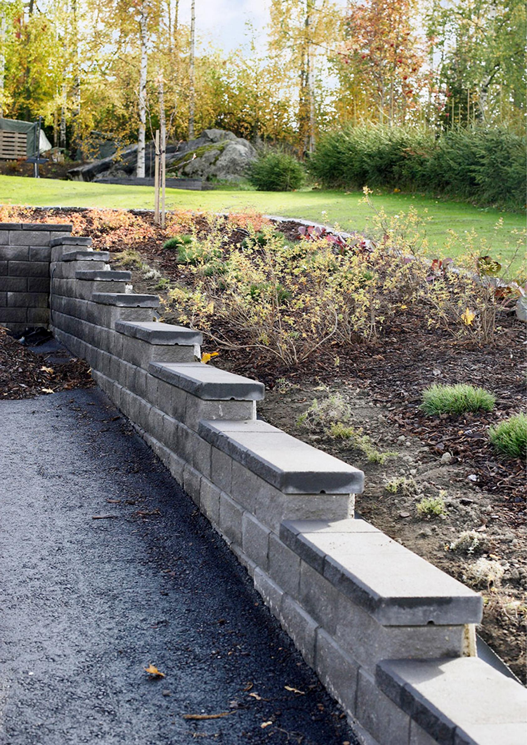 11. Tukimuurin pintaan voidaan asentaa erilaisia kansi- ja pintakiviä valmistajan ohjeiden mukaan.