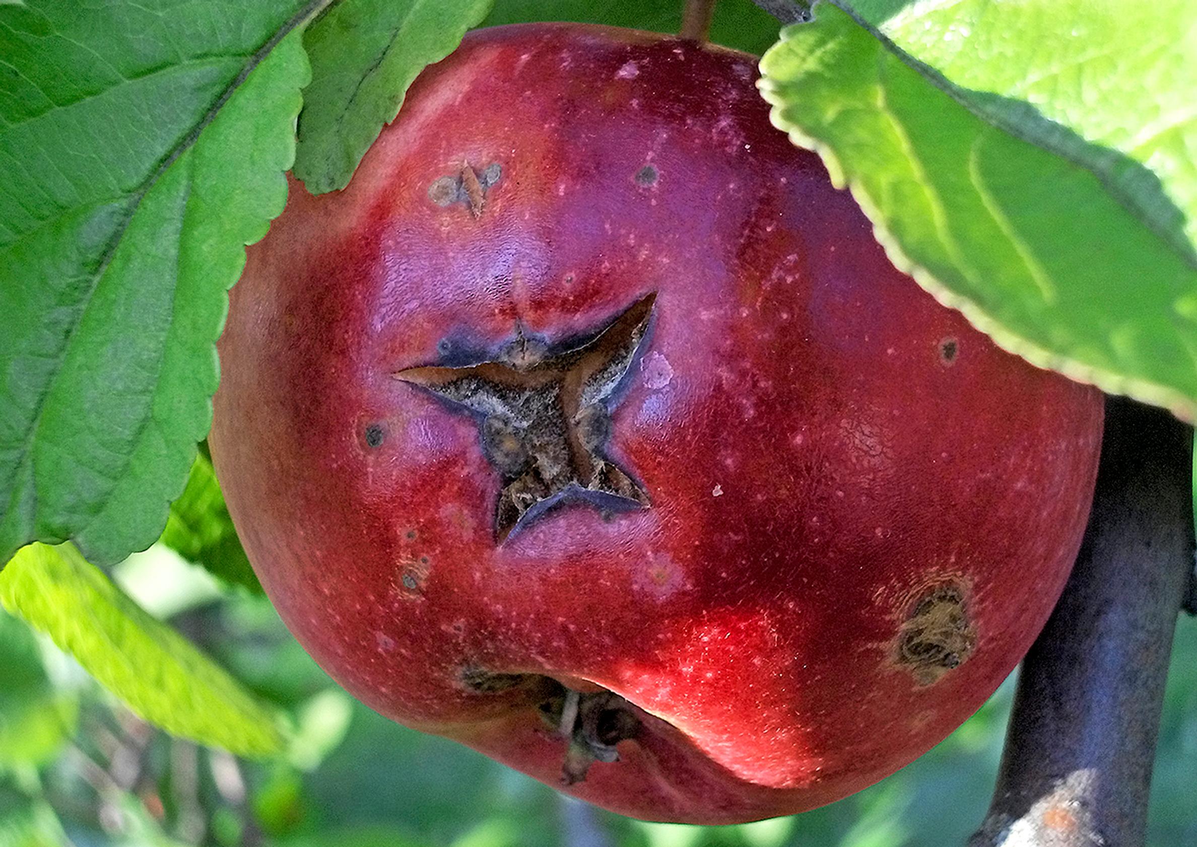 Tuntomerkit: Sienitauti, joka mädännyttää omenan. Tauti pääsee kuoressa olevan reiän kautta hedelmään. Hedelmän pintaan muodostuu rengaskuvioisia, vaaleita itiöpesäkkeitä. Varastossa kehittynyt tautinen hedelmä muuttuu mustaksi ja kiiltäväksi. Myös kukat ja kukkaversot voivat vahingoittua.
