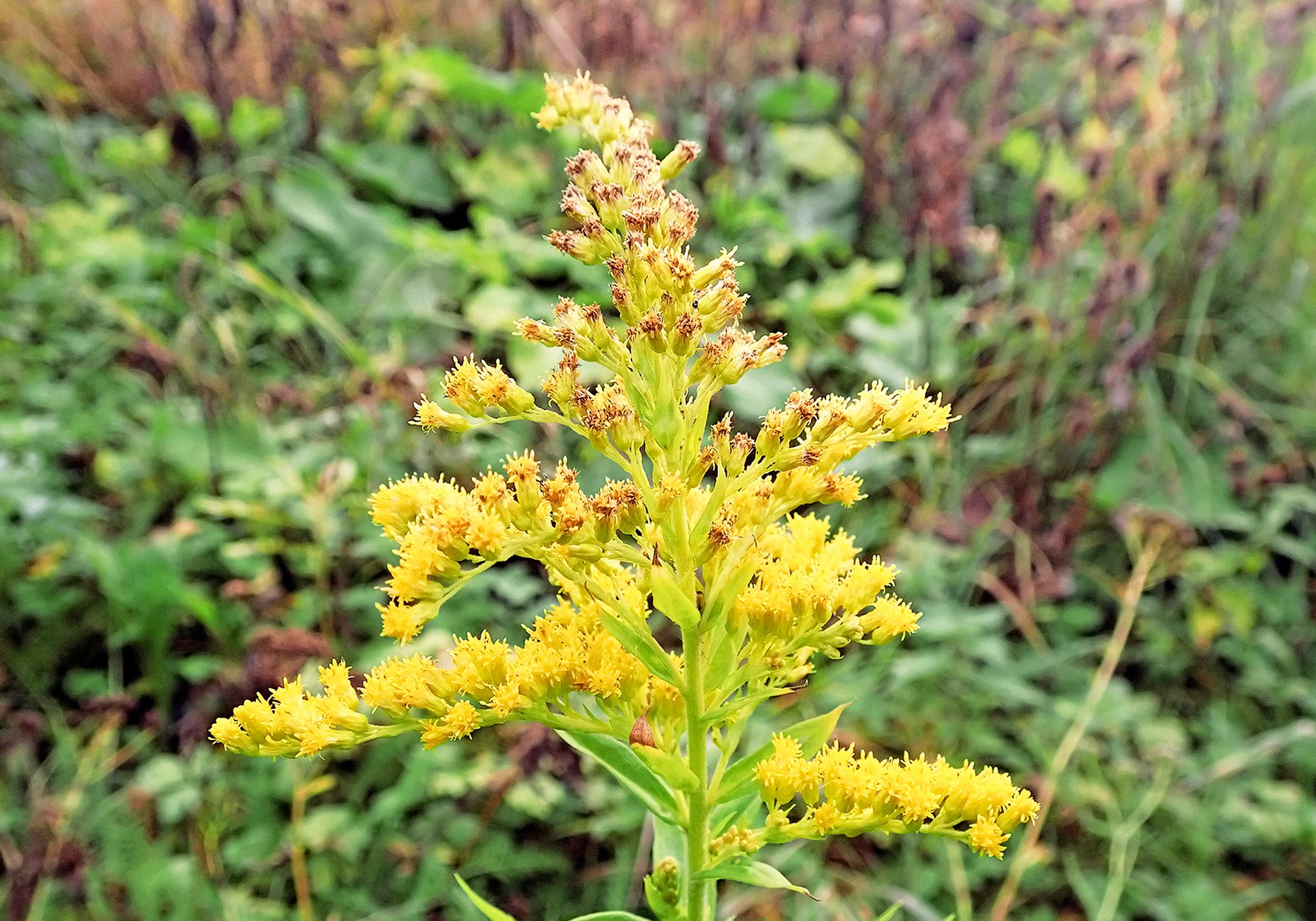 Tuntomerkit: Noin 1,5 metrin korkuinen perenna. Pienet keltaiset mykerökukat muodostavat kartiomaisen tertun elo–lokakuussa. Siemenet leviävät tehokkaasti siemenpähkylän päässä olevan haivenen avulla. Leviää helposti myös puutarhajätteiden ja maa-ainesten mukana. Tavataan aina Oulun eteläpuolella saakka.
