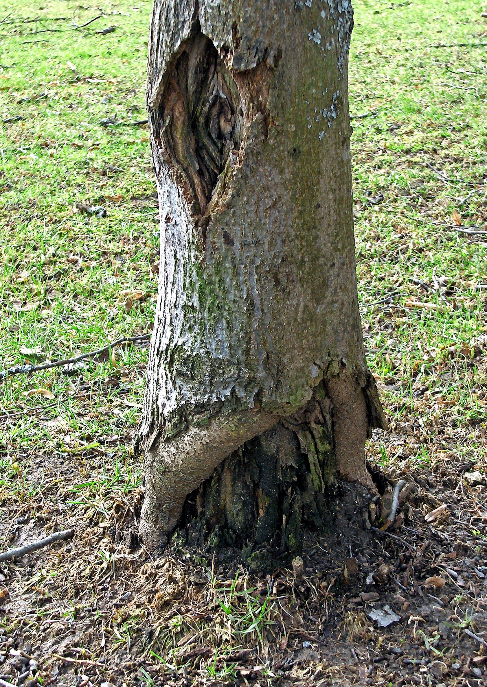 Lahon eteneminen: Pääsee puuhun haavojen ja halkeamien kautta. Puu kykenee rajaamaan lahon sydänpuuhun, paitsi oksien kohdalta sieni pääsee pintapuuhun. Tällaiset oksat repeävät herkästi, jos niiden päälle tulee painoa, kuten märkää lunta. Laho tekee etenkin runkohaarasta heikon ja repeämisalttiin. Latvan keventäminen ja latvustuenta voivat antaa vanhalle puulle lisää elinaikaa.