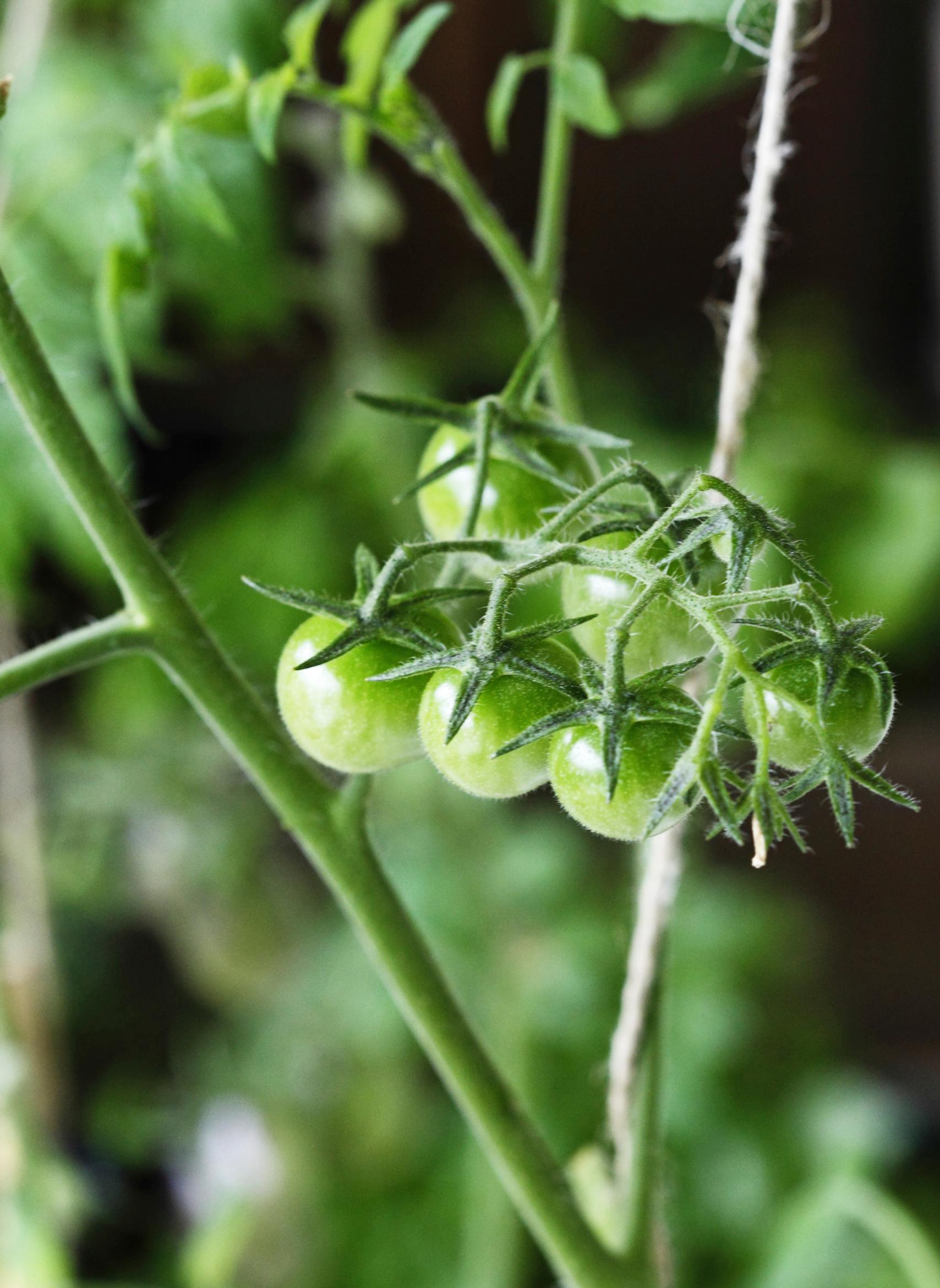 Kirsikka- ja miniluumutomaatit. Parvekkeelta juuri ennen syömistä poimittuina ne maistuvat sokerisen makeilta ja täyteläisiltä.